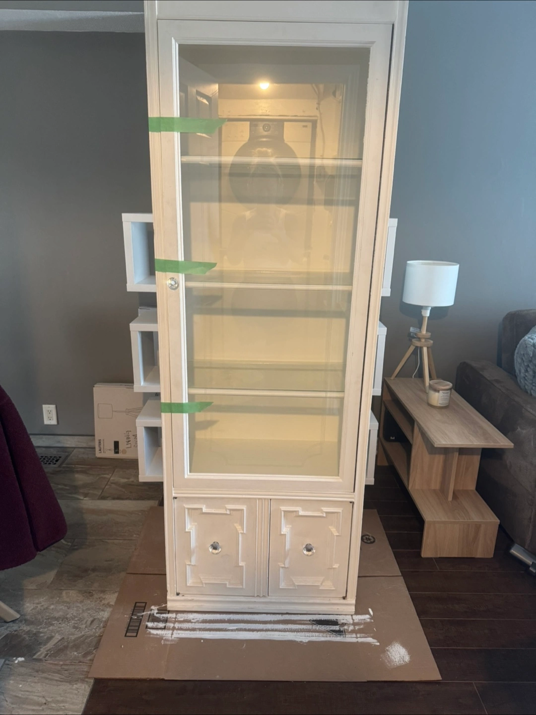Selling a charming white display cabinet! It features glass shelves and a cabinet at the bottom for extra storage. Perfect for showcasing your favourite items or storing household essentials. It's in good condition and ready for a new home!