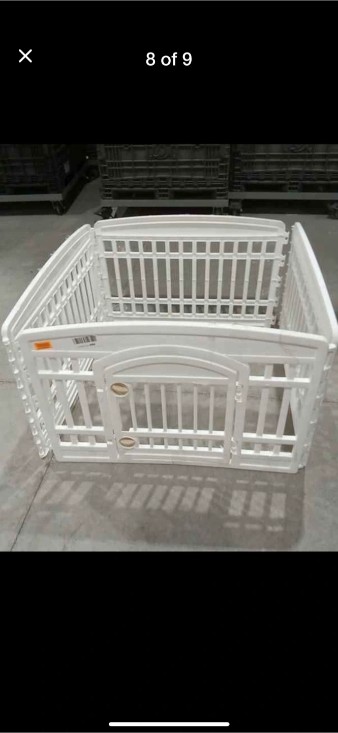 Selling a dog playpen in great condition! It's white and features a door for easy access. Perfect for creating a safe and enclosed play area for your Poppy