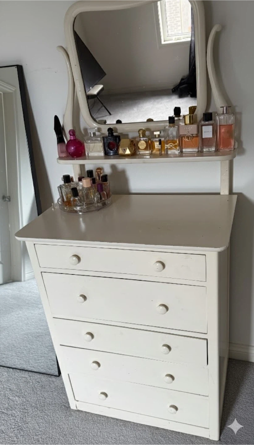 12Selling a charming white dresser complete with a mirror! It features four drawers, perfect for organizing your clothes and accessories. The mirror adds a touch of elegance and is great for getting ready in the morning. It's a lovely piece for any bedroom or dressing area.
