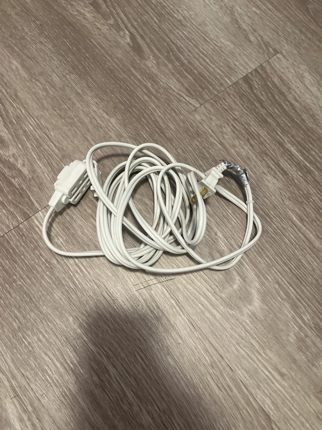 116Selling a white extension cord in used condition. It's perfect for extending the reach of your electronics or appliances. Please see the photos for details!