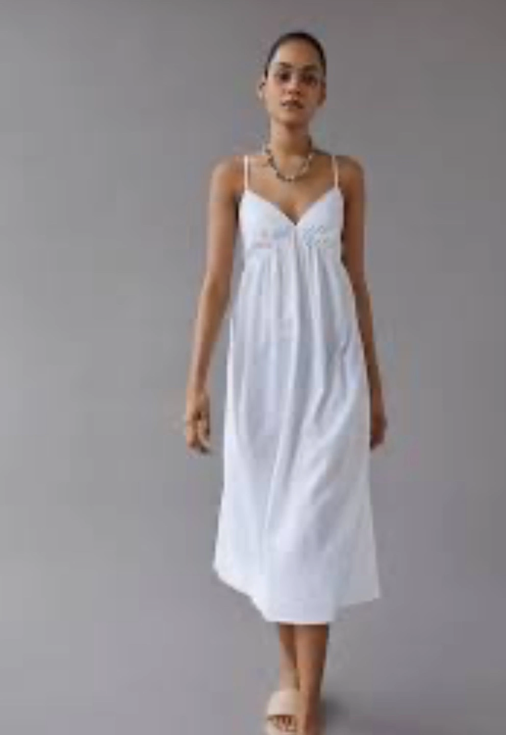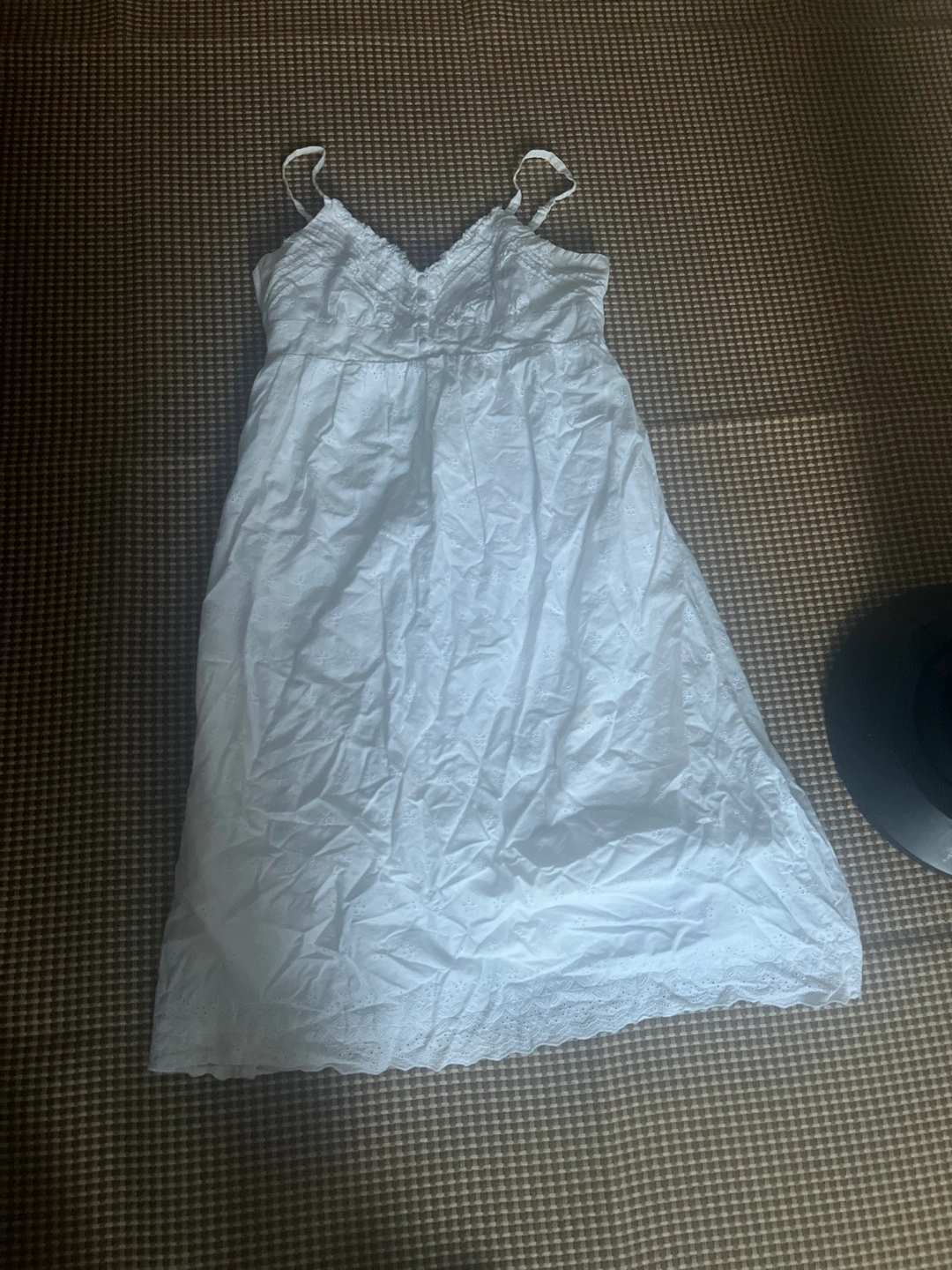 10Adorable white eyelet midi dress. Features thin straps and an empire waist. Beautiful summer dress. Size 3/4.
