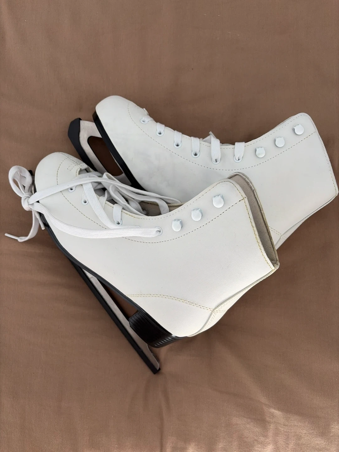 68Selling a pair of Decathlon figure skates in white. They are slightly marked from being in storage but they are perfect besides. Limited wear.