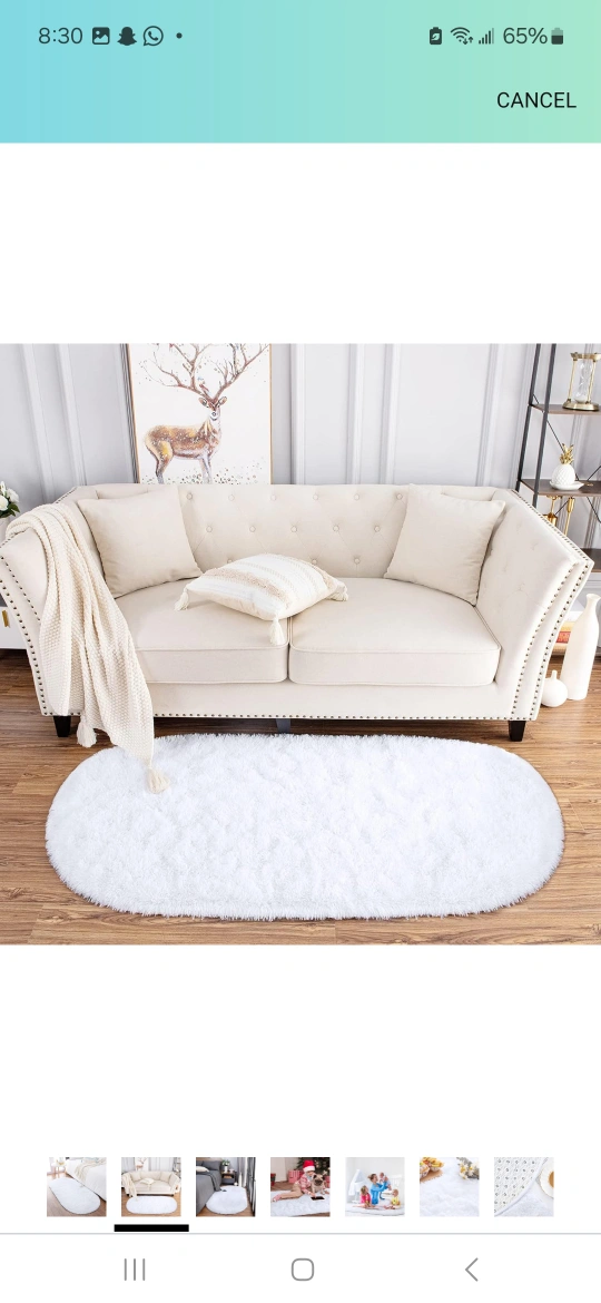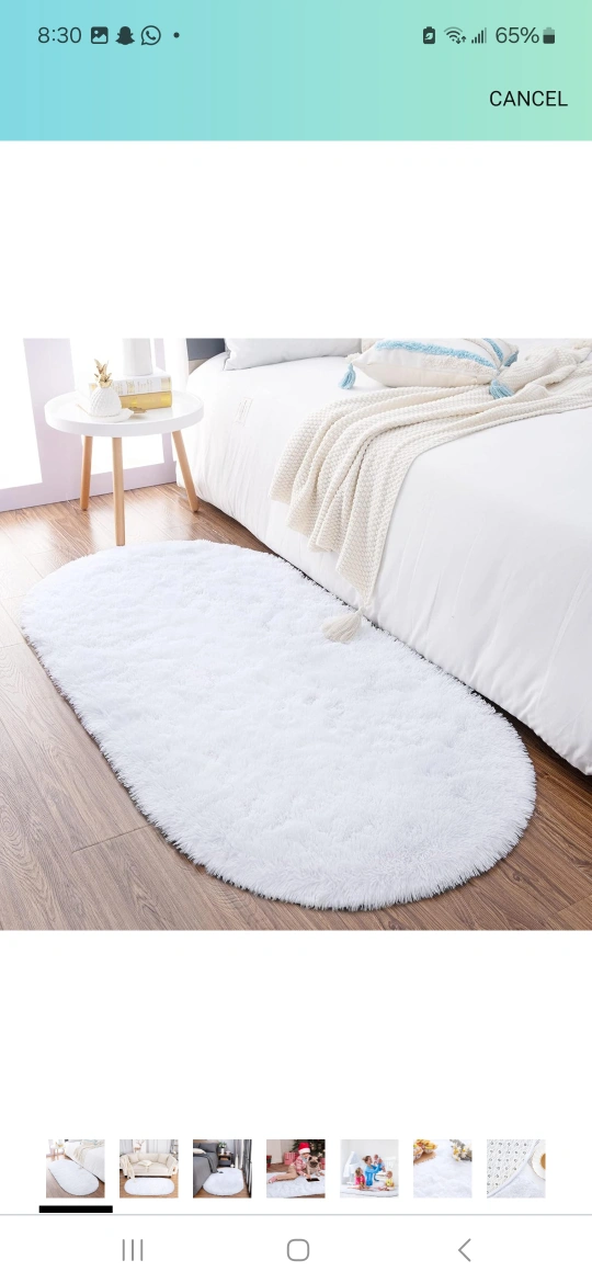 22Add a touch of cozy to your space with this fluffy white area rug! It looks great in bedrooms, living rooms, or even kids' play areas. It's soft and adds a warm feeling to any room. 2 feet 7 inches x 5 feet 5 inches.