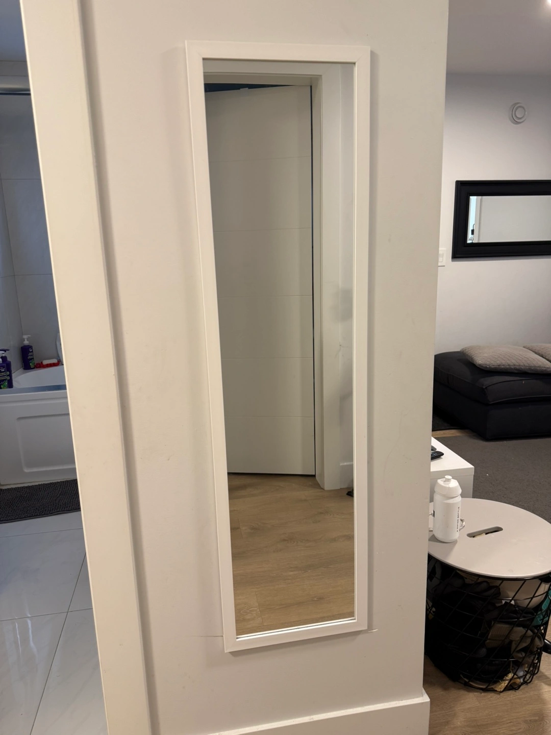 60Rectangular mirror with a simple white frame. Suitable for any room to add some space and light. It's a perfect piece to help you take a breath and center yourself.