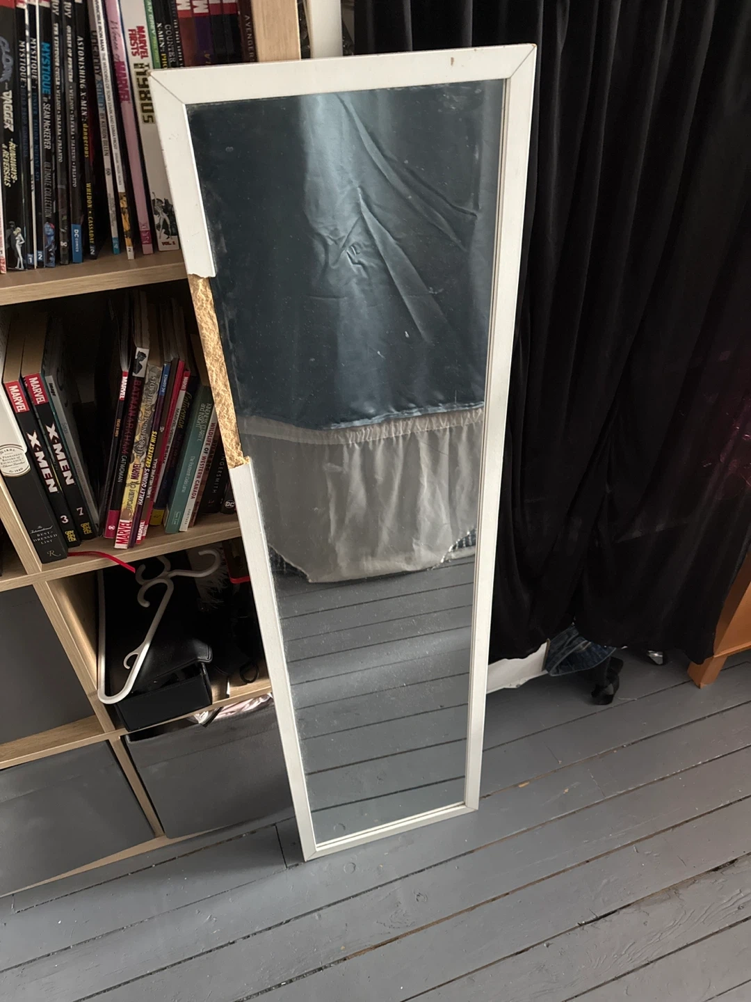 130Selling a mirror with a white frame. There is some damage to the frame as shown in the photos.