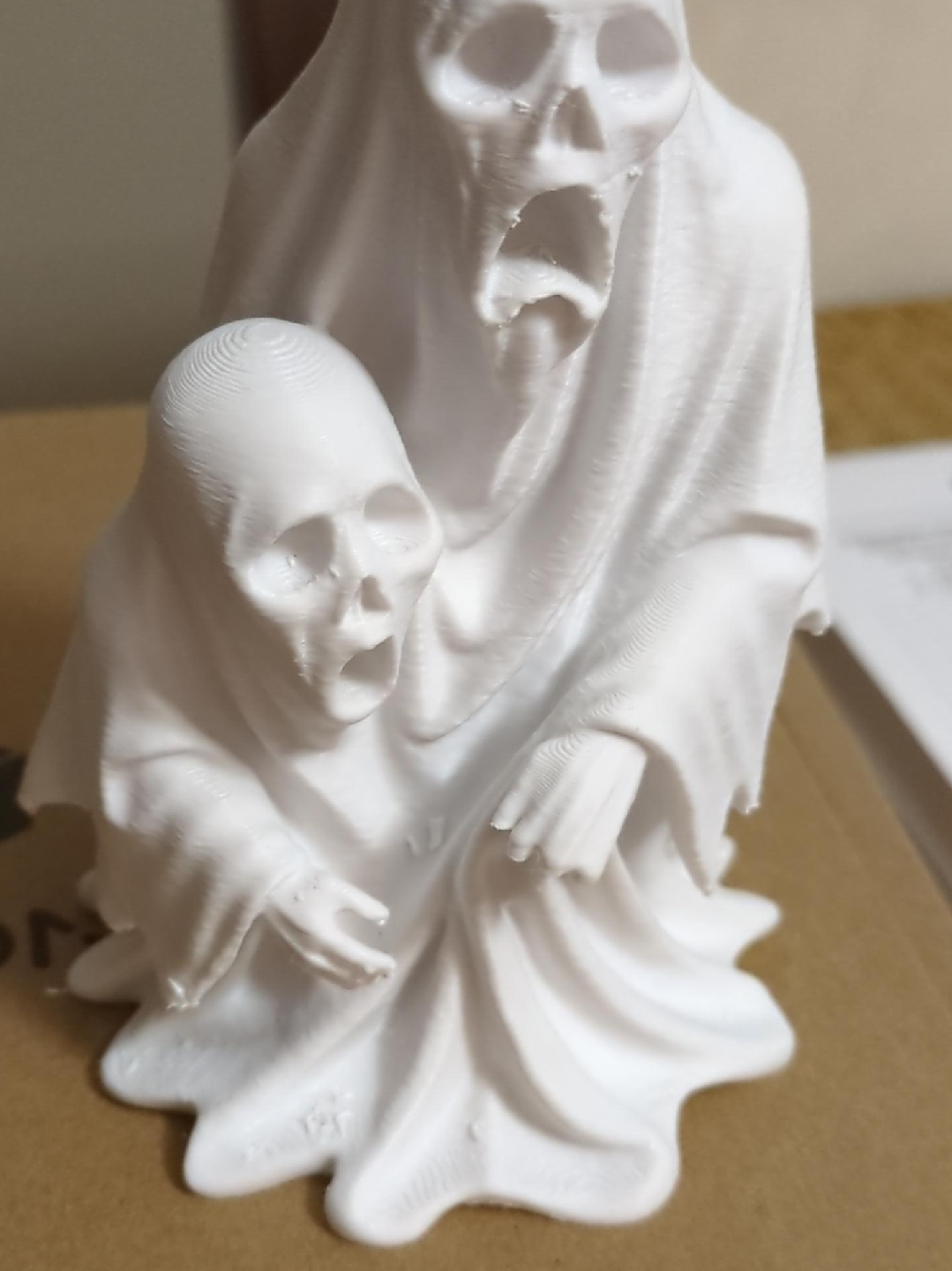 A spooky yet cool white figurine featuring a ghost and a skull, perfect for adding a touch of eerie charm to any space