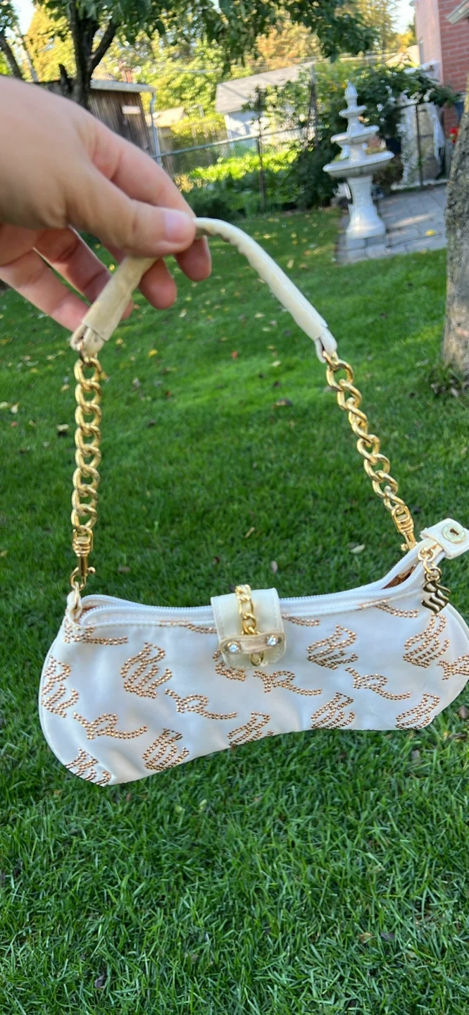 10This is a cute white shoulder bag with gold accents! It's perfect for adding a touch of elegance to any outfit