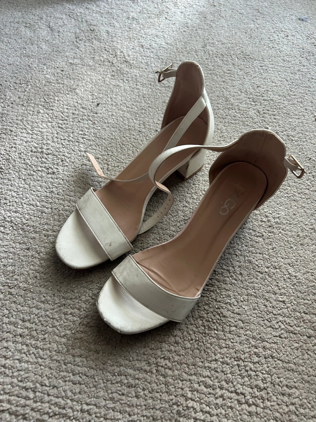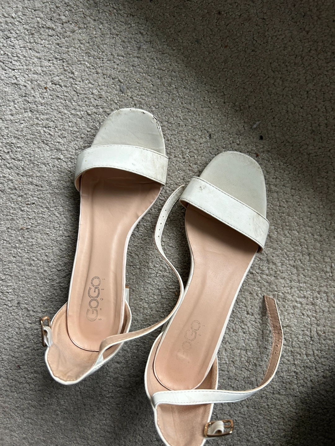 Selling a pair of Gogo Shoes white heels in size 7. Show signs of wear as shown in photos, but still have lots of life left!