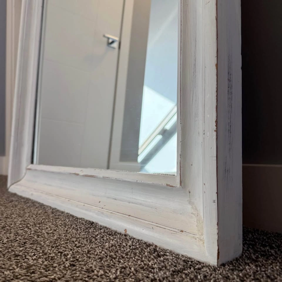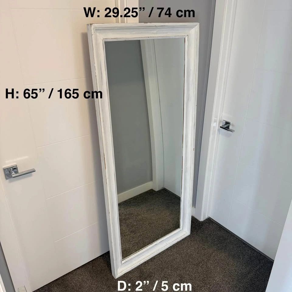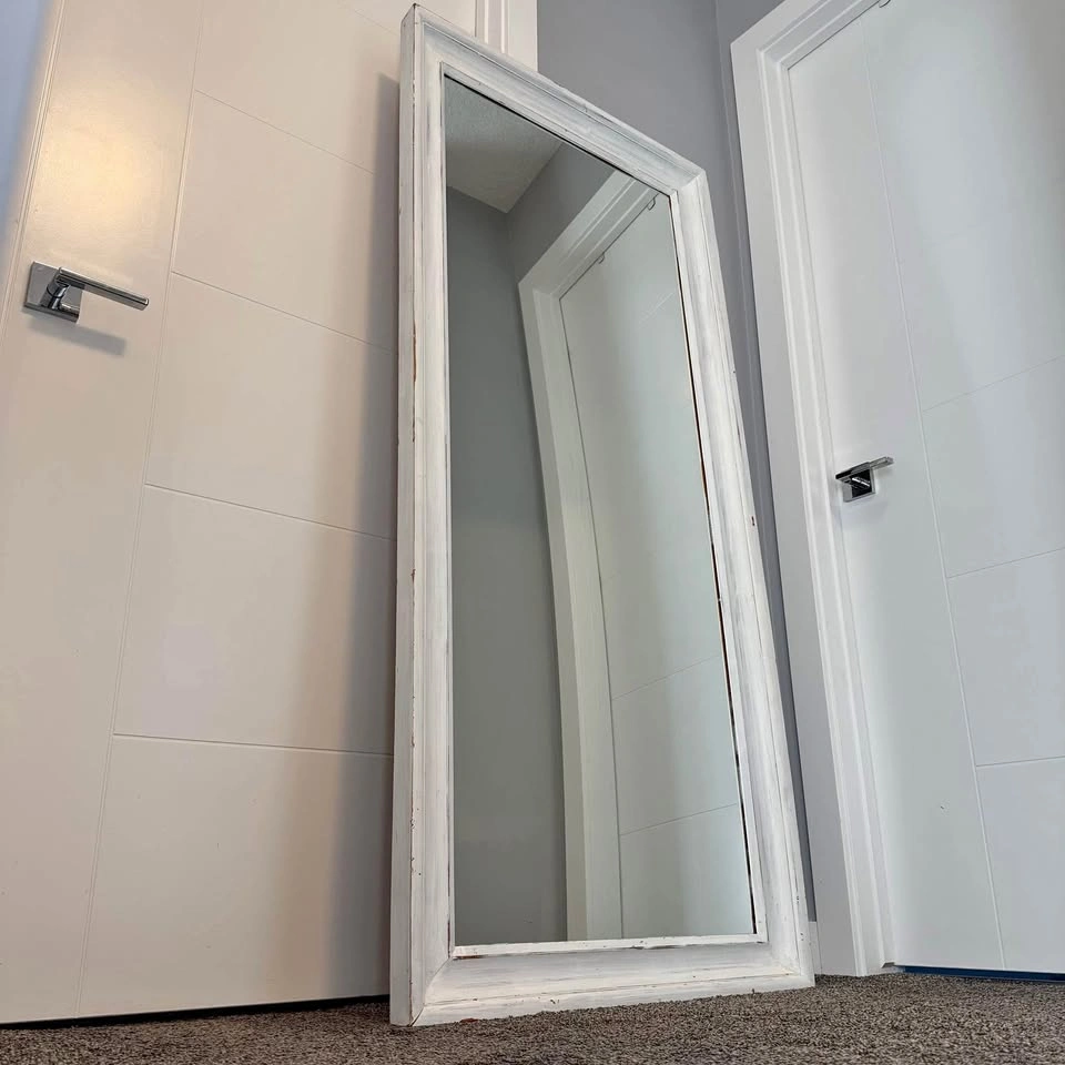 31This is a beautiful HEMNES floor mirror from IKEA, finished in white with a rustic, farmhouse-inspired distressed look. The solid wood frame has been lightly sanded along the edges for that vintage charm. The mirror is in good overall condition with a clean, sturdy frame and no cracks or major flaws. We originally purchased it from IKEA’s As-Is section, where it was discounted due to being slightly warped (convex). Because of this, it’s best suited to lean against a wall — it’s not suitable for mounting or hanging. The convex shape is subtle and doesn’t distort your reflection noticeably. This model is now discontinued by IKEA, so it’s a great find if you’re after that classic HEMNES aesthetic! MEASUREMENTS: • Height: 65” (165 cm) • Width: 29.25” (74 cm) • Depth: 2” (5 cm) Pick-up in Glenwood (west Edmonton near Mayfield Common). $50 OBO (cash preferred)