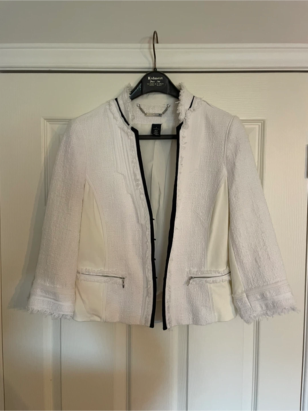 60Selling a White House Black Market jacket in size 6. It's in great condition and features a stylish design with black trim.