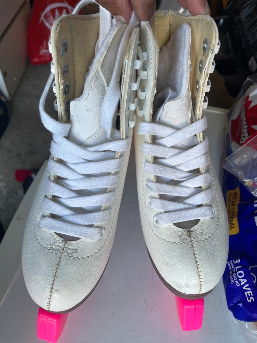 Selling a pair of white ice skates. They're in good condition and ready for some fun! Size 1