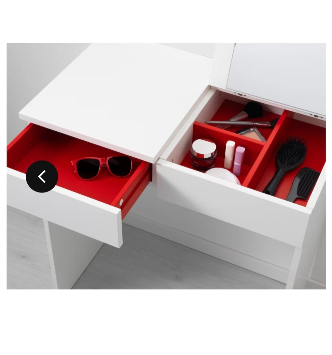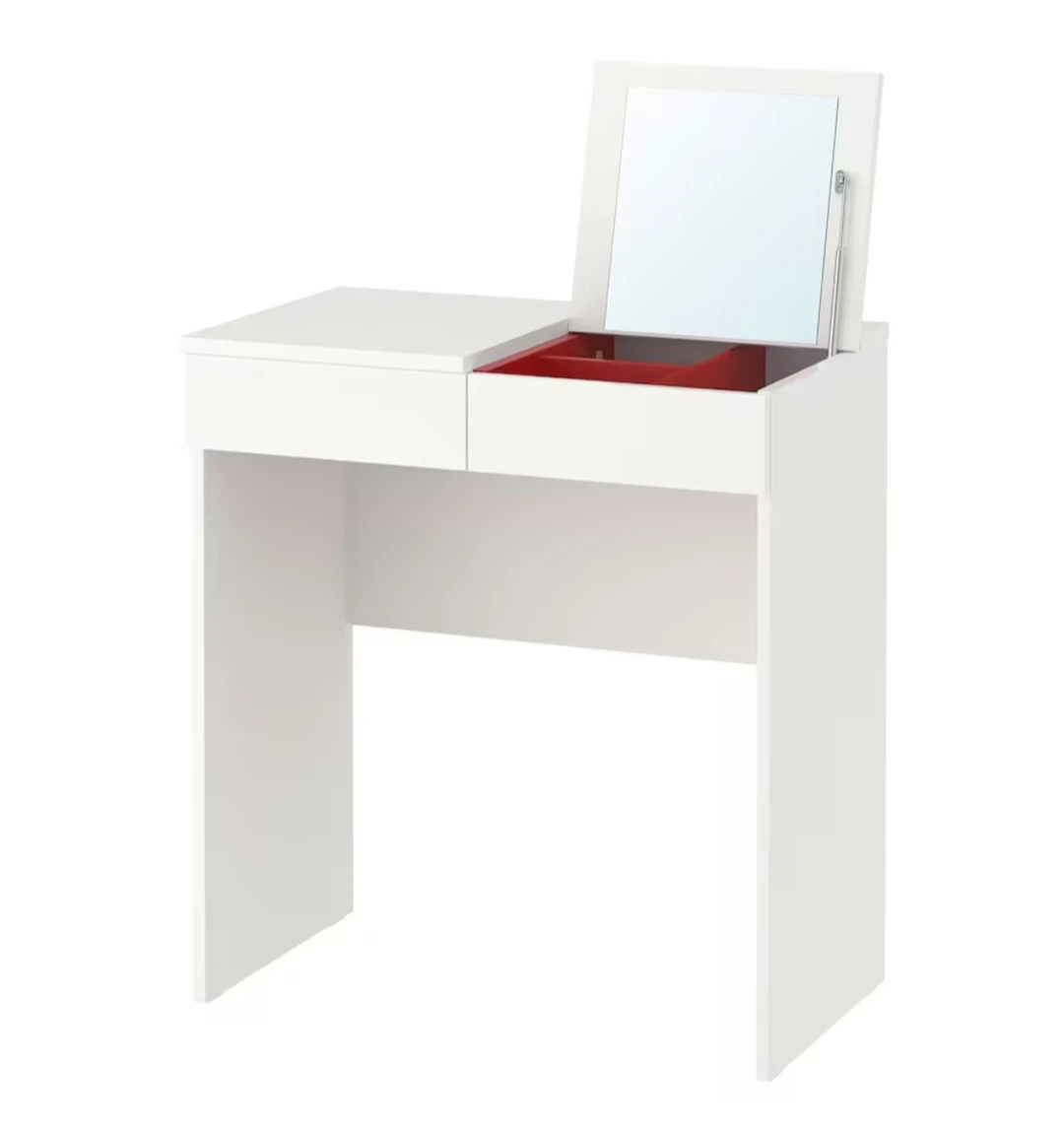10- Comes with 1 drawer, built-in mirror with storage and organizing compartments (red interior) - Dimensions: 27.5 in wide x 16.5 in deep x 31 in high - Pick-up in Scarborough (Birchmount/Ellesmere)