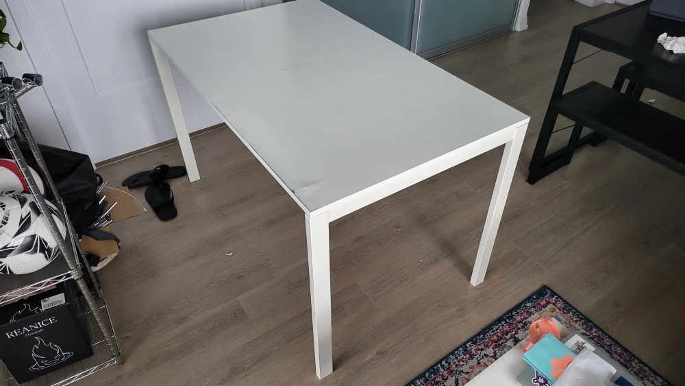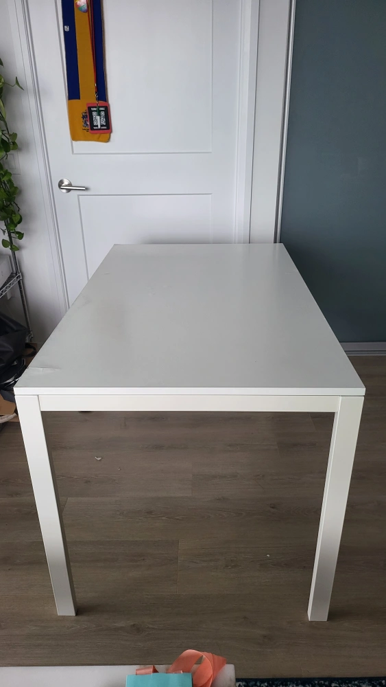 26White ikea dining melltorp dining table Pickup only, Yonge-Eglinton. Priced to sell, must go this month. - Metal base with a wooden top. - Has a few blemishes, all show in the pictures. Last few pictures shows a small ply chip and lift, nothing that takes away other than cosmetic appearance and can be easily patched. - Perfect for small-medium apartments. - Fits 4 chairs comfortably, with possibility of 6 when need be. - Doubles up as a great work table too. - Smoke/ Pet free home - Bought it new for ~$130 Cash/ E-transfer works