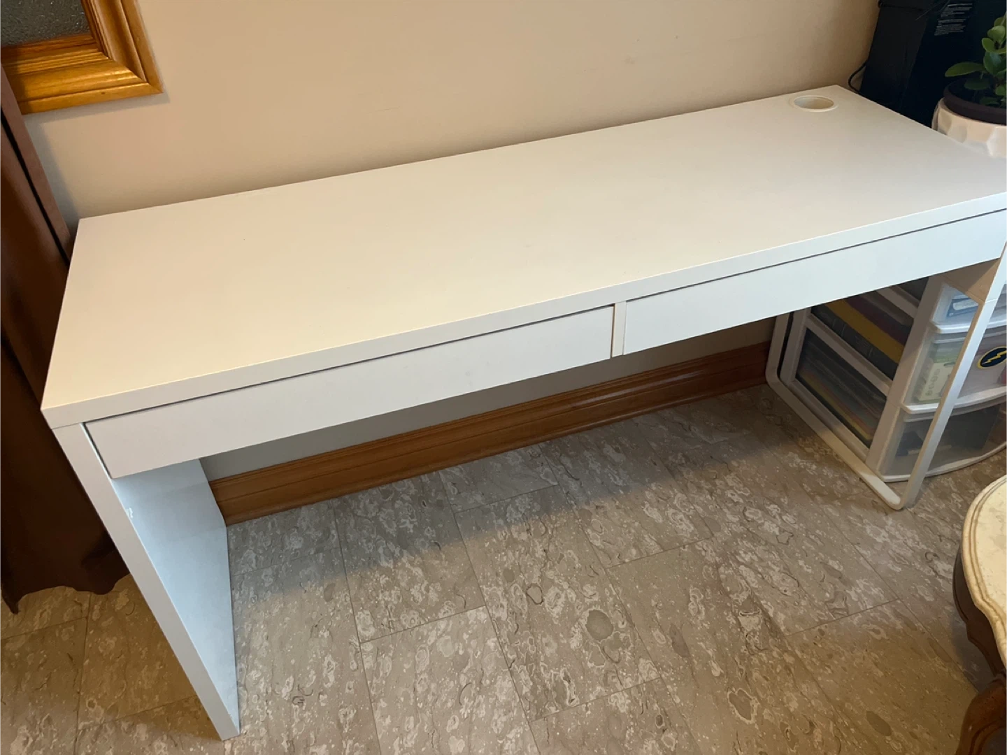 IKEA Micke white desk with built-in drawers. It's perfect for a home office or study space. The desk is in excellent condition and ready for a new home! Cash Only please fastest pick up.
