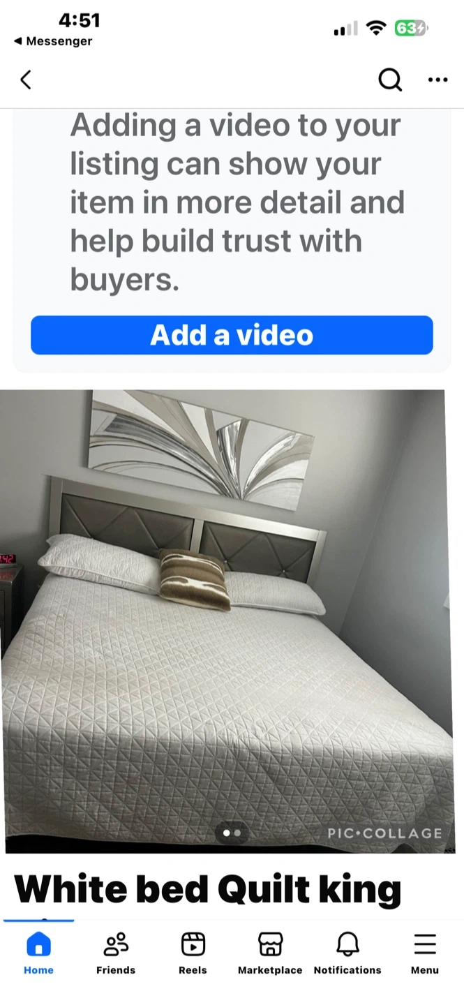 32Selling a white king size bed quilt. It's in great condition and ready to add a touch of elegance to your bedroom! Extra decorative pillow included! Pillow shams also included! Without pillow insert only shams 4 piece set