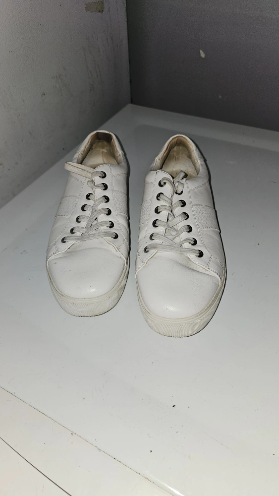 Selling a pair of white leather sneakers. They are in good cindition as you can see from the photos.