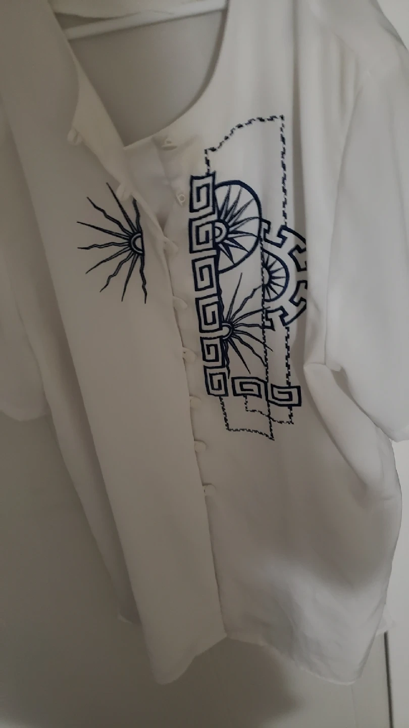 beautiful embroidery this item is fairly long so would pair nicely with a pair of black pants