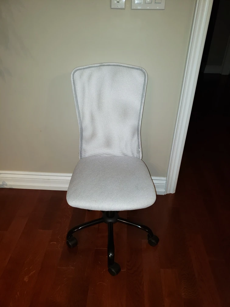 55Selling a simple and comfortable white mesh office chair. It's in great shape and perfect for a home office or student desk. The mesh back provides good ventilation, and the chair is easy to move around on its wheels