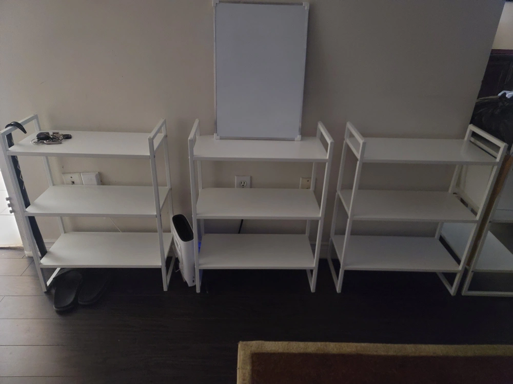 Selling a set of 4 white metalized ikea shelving units. They're like new and perfect for organizing any room. Great for kids books and accessories. $25 each is firm.