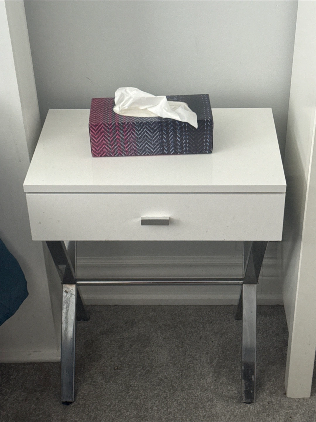 Gray Upholstered Bed Frame with Drawers (Queen)