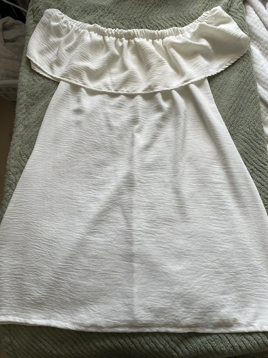 Selling a cute white off-the-shoulder dress! It's in great condition and perfect for summer. The material has a nice texture to it, making it a stylish and comfortable choice for any occasion Pick-up ONLY