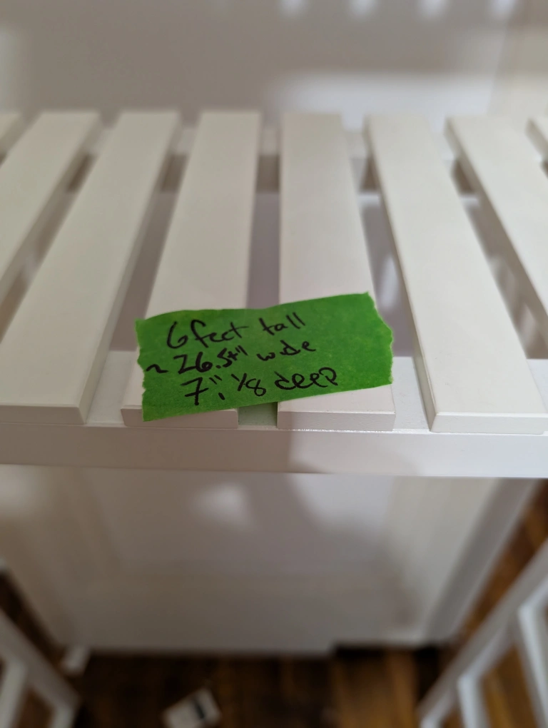 - Dimensions26.5 inches wide, 7&1/8 inches deep, 6 feet tall