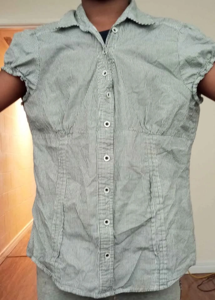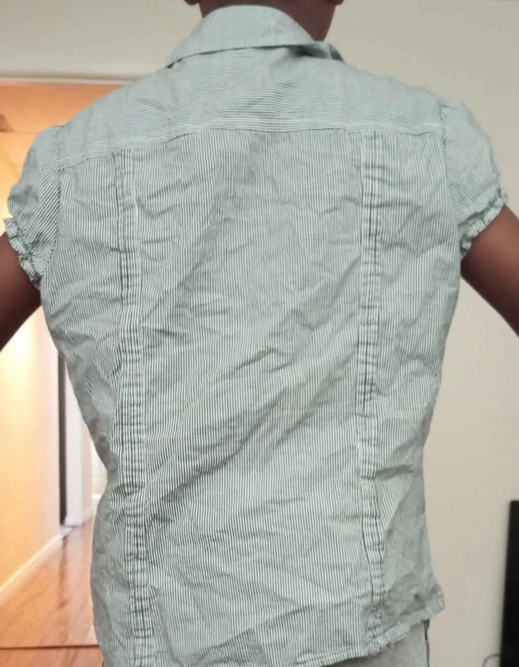 10- White pants, size US small - White and black striped button up shirt, size XL $5 each. Cash only 💸