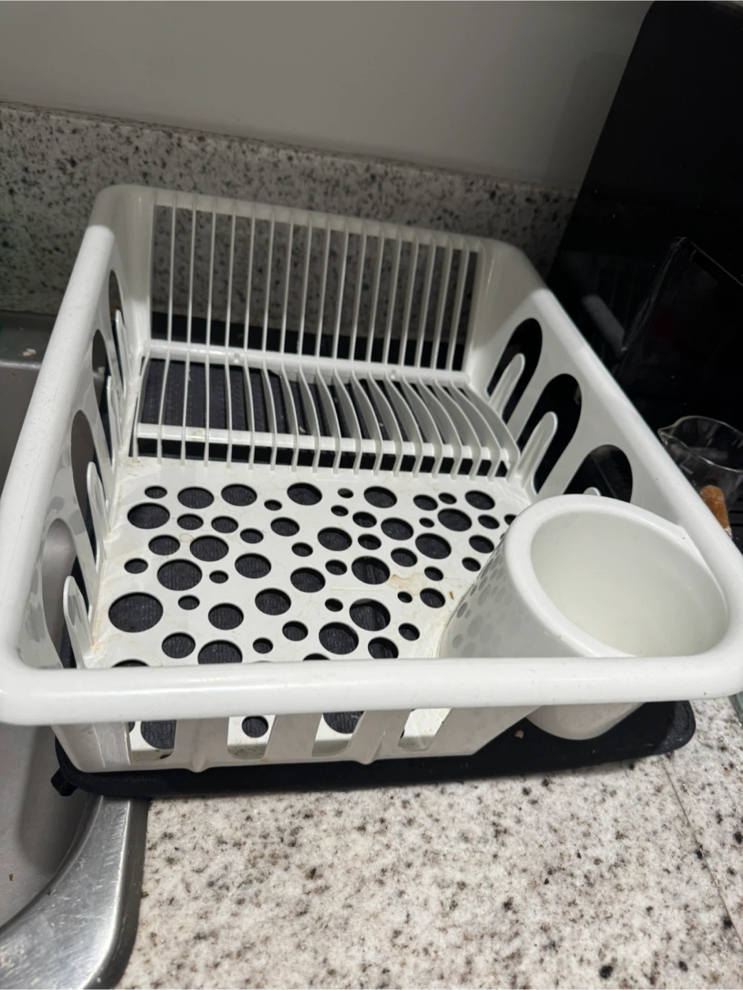 10Selling a white plastic dish rack. It's in good condition and ready to help keep your kitchen organized!
