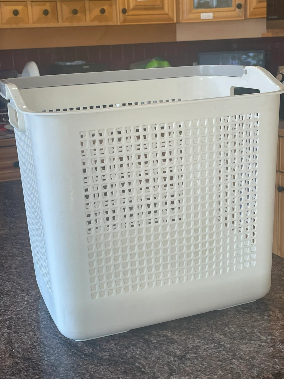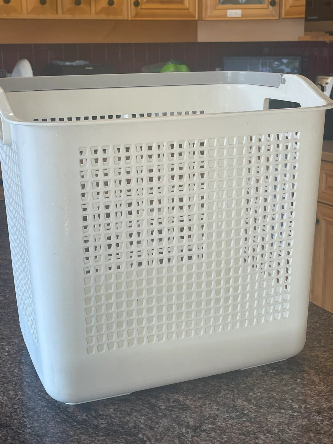 Selling a white plastic laundry basket. It's in great shape and ready to haul your clothes to the laundry room!