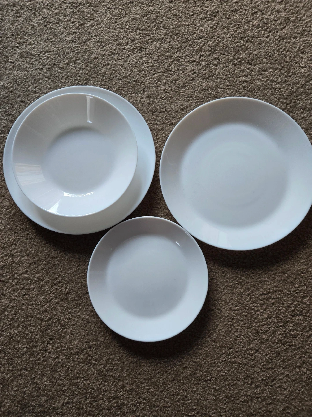 21Selling a set of white plates. 4 plates. They're in great shape and ready for a new home!