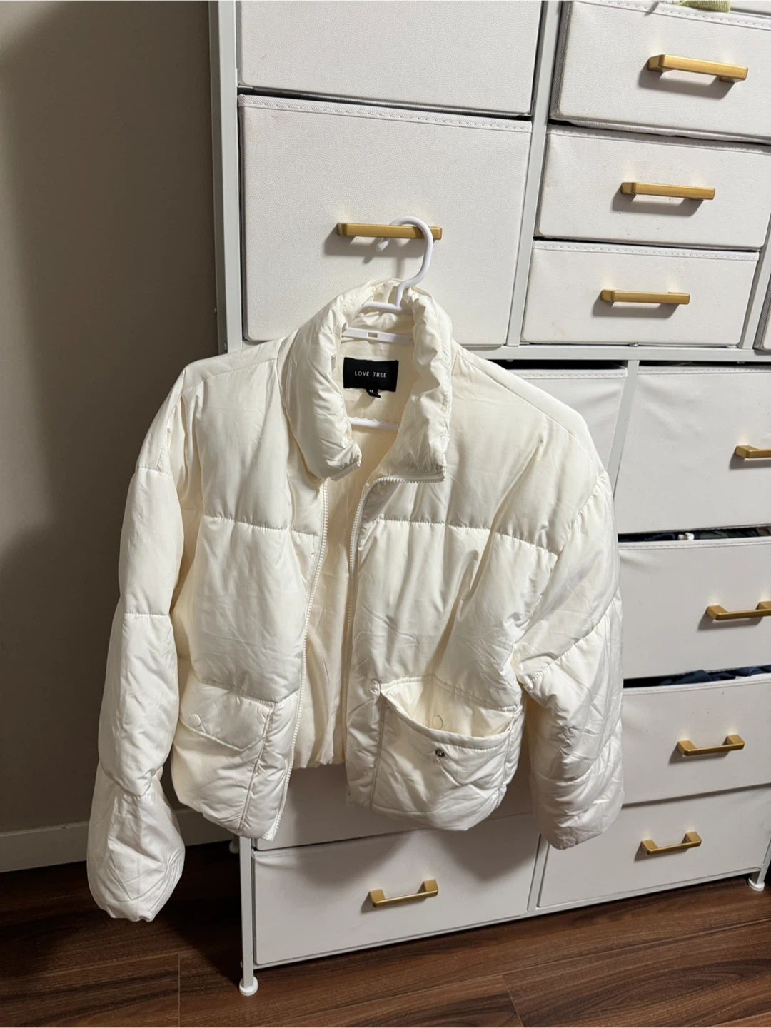 35Here's a Love Tree white puffer jacket in a size medium! It's from Urban behaviour