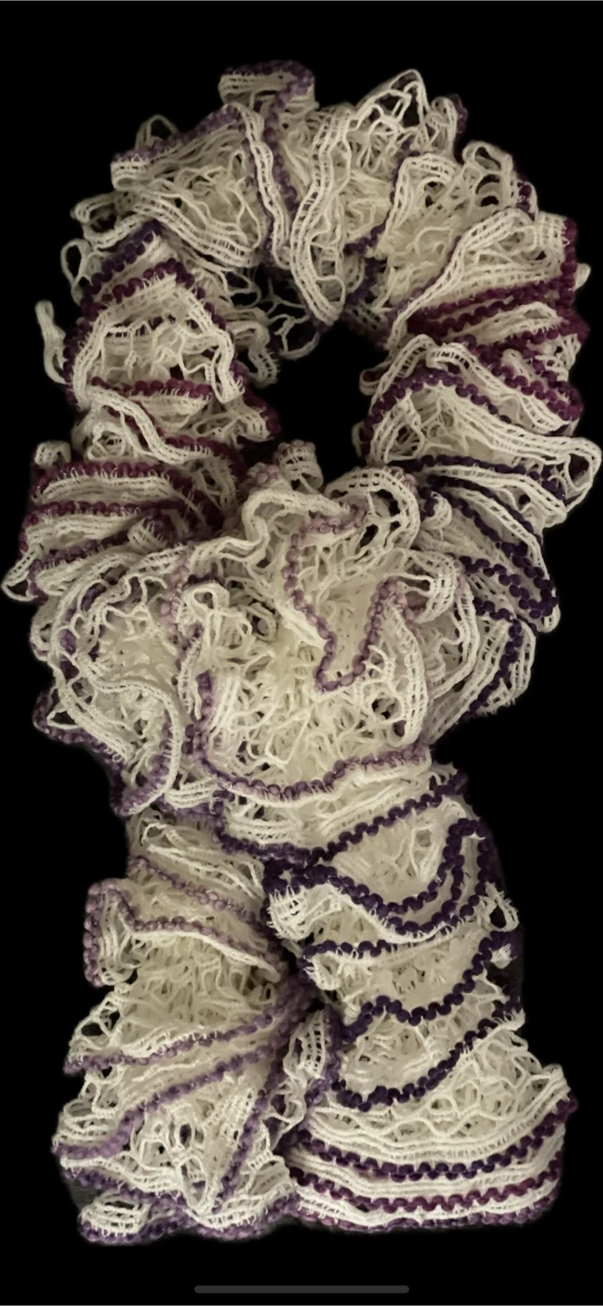 White & Purple Ruffle Scarf