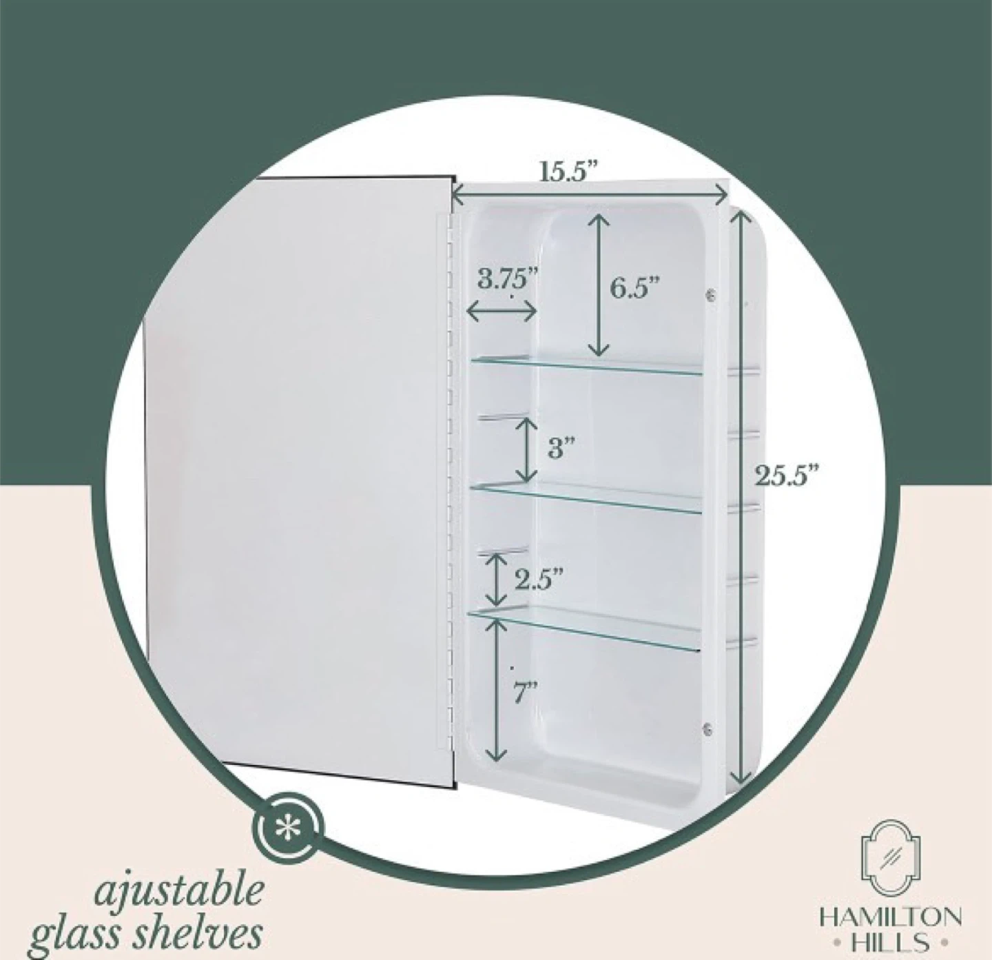 10Hamilton Hills 16x26 Inch White Recessed Bathroom Medicine Cabinet with Mirror - Beveled Bathroom Cabinet Organizer with Shelves - Farmhouse Wall Mounted Hanging Medicine Mirror Unit