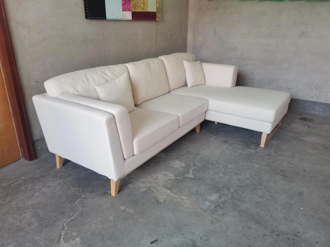 Selling a comfy white sectional sofa with a chaise lounge! It's in great shape and would be perfect for a living room or den. The cushions are soft and supportive, making it a great place to relax after a long day. warehouse sale