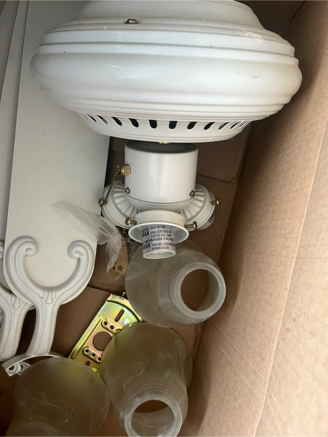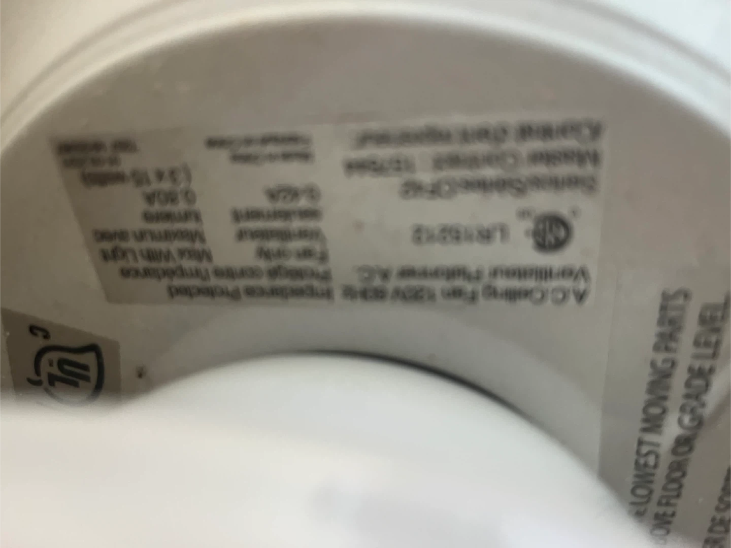 Selling a Series CP-42 ceiling fan! It's an A.C. ceiling fan that operates at 120V 60Hz. It is impedance protected and designed for fan-only ventilation. It also has a maximum light output of 0.80A (3x15 watts). Comes with the fan blades and light covers.