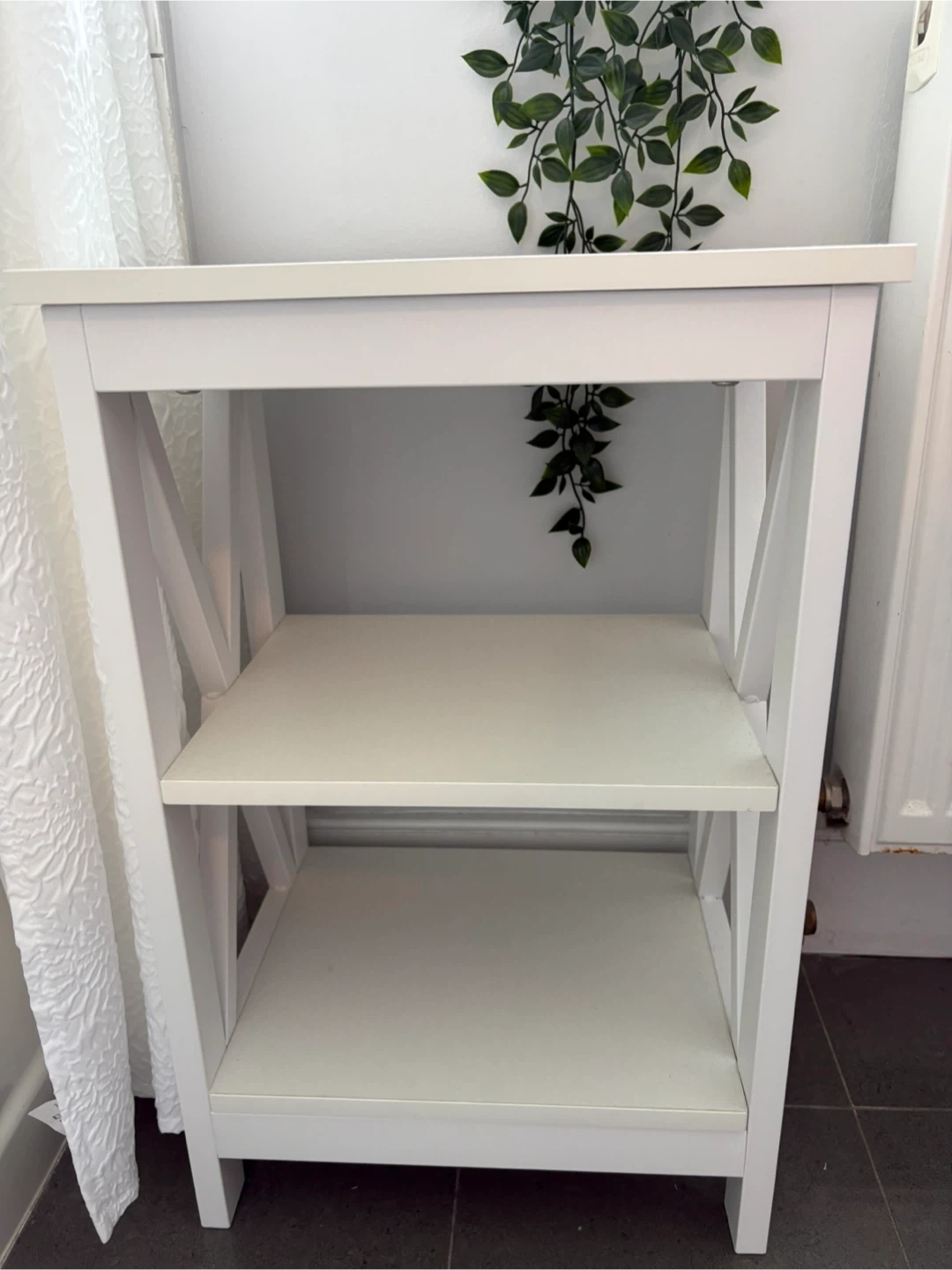 *Please note: Must come to me in Etobicoke for pickup. Must sell before end of October - I am moving. Cash only.* Selling a white shelf unit, perfect for adding some extra storage to your bathroom or any room in the house! It's in perfect condition and ready for a new home. Dimensions: Height: 24.4 inches (62 cm) Width: 15.8 inches (40 cm) Depth: 12 inches (30 cm).