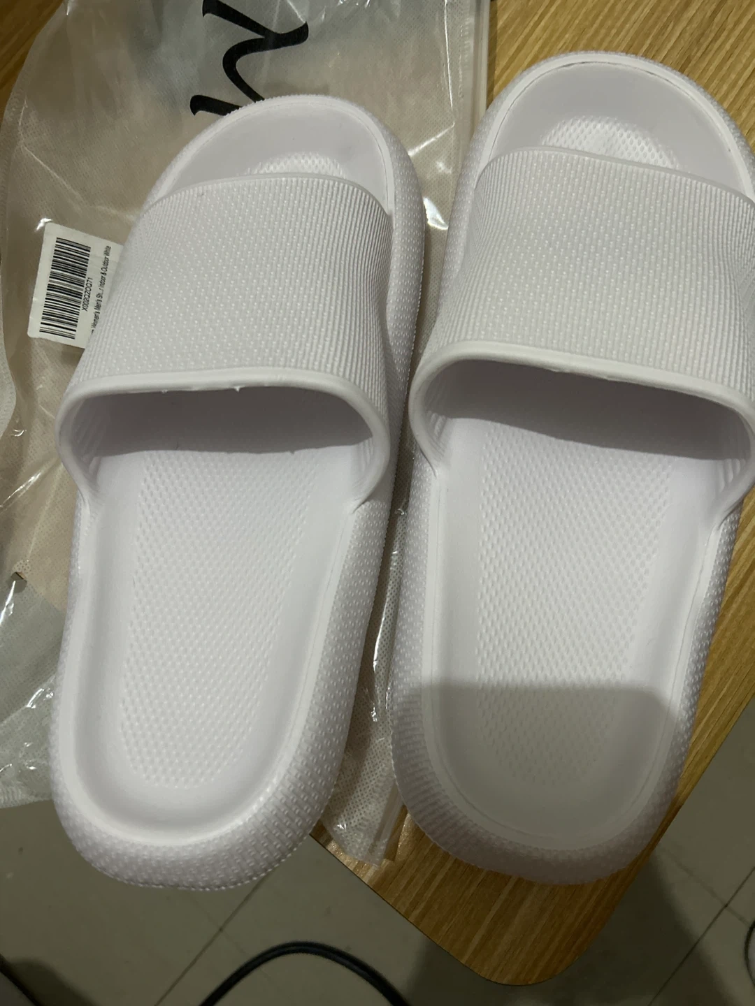 154Selling a pair of white slides, size 42-43. They're super comfy and in great condition!