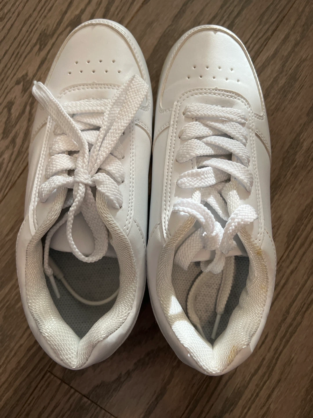 10Selling a pair of white sneakers. Never wore before It’s has light up around the white rubber can be change to a different style of light and different color but only one shoes light up comes the other shoes is not light up Comes with usb charger.