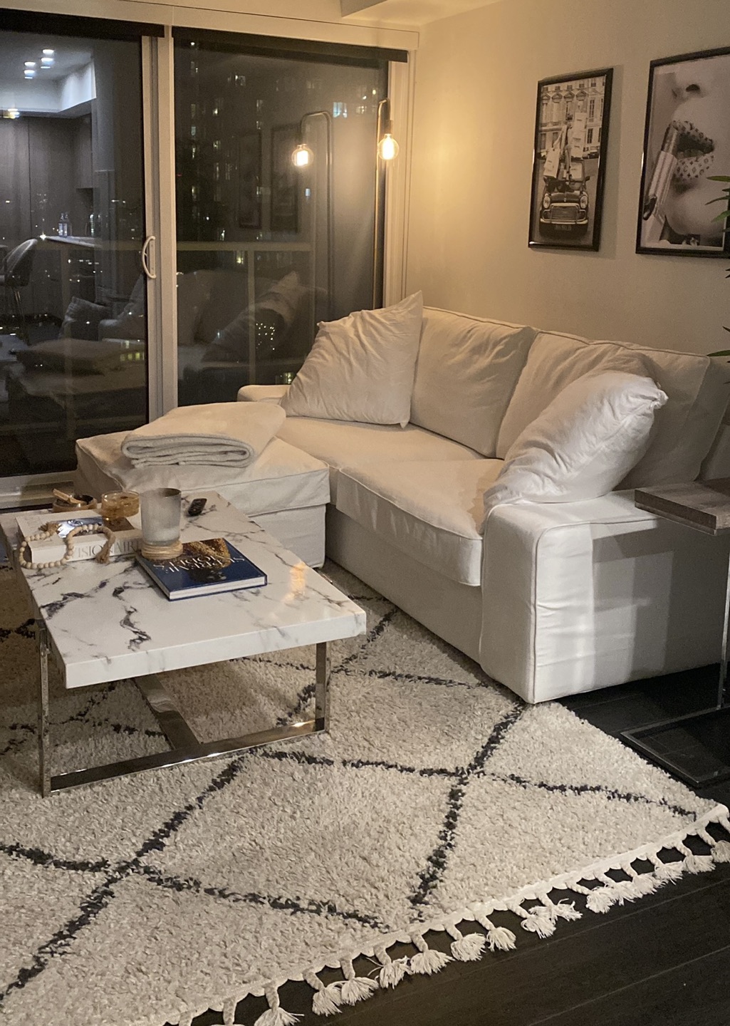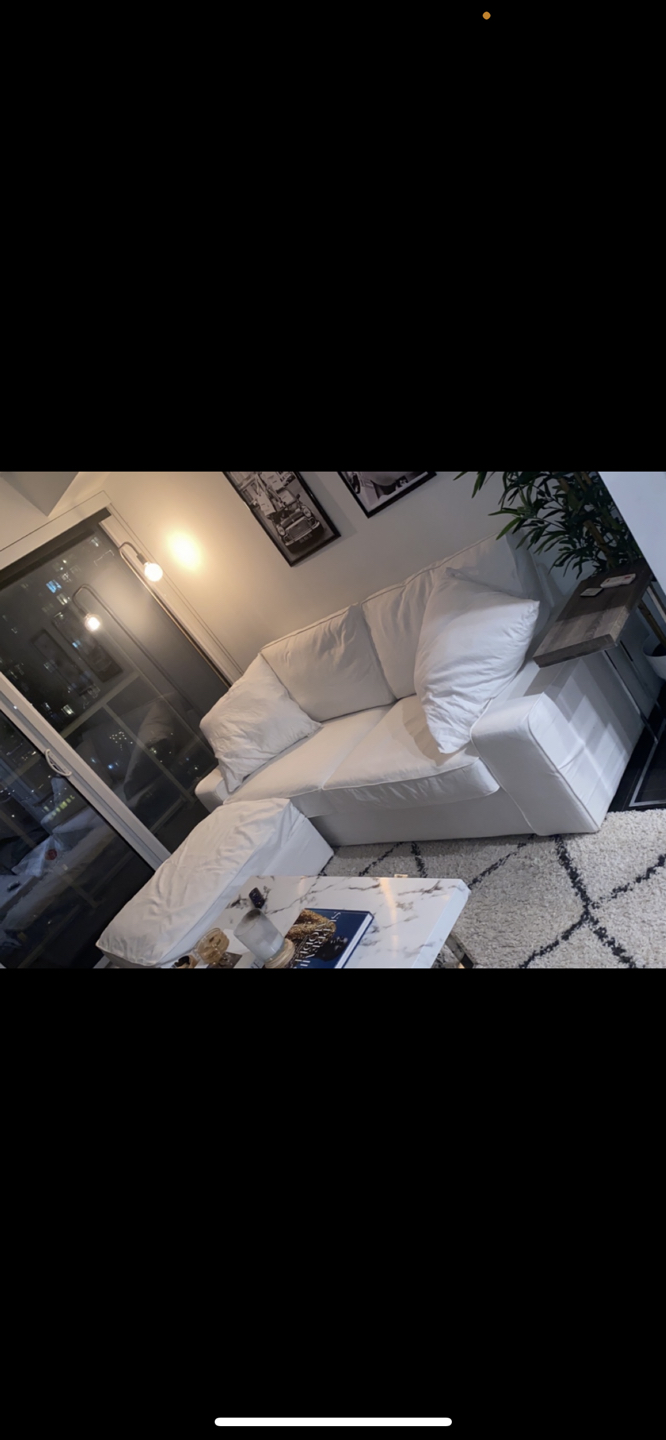 15Included: White washable custom covers Sofa Two white extra pillows 26 x 26 Resembles cloud couch, super comfy and feels like a bed ! Fits in small condo spaces, would look great in both small, medium and large spaces.