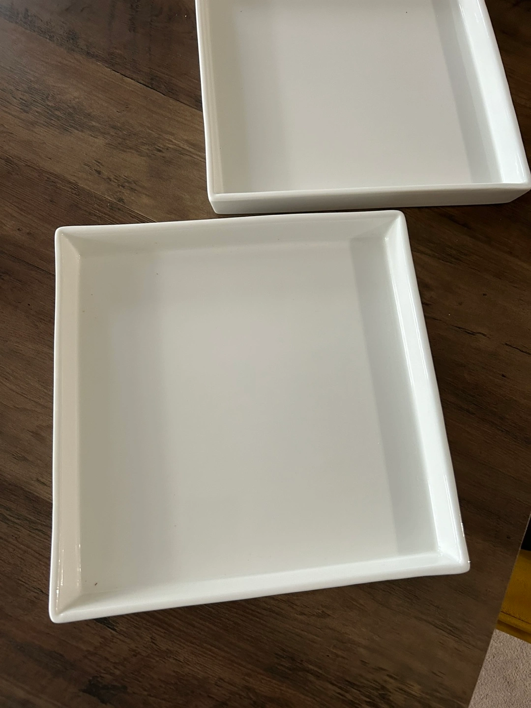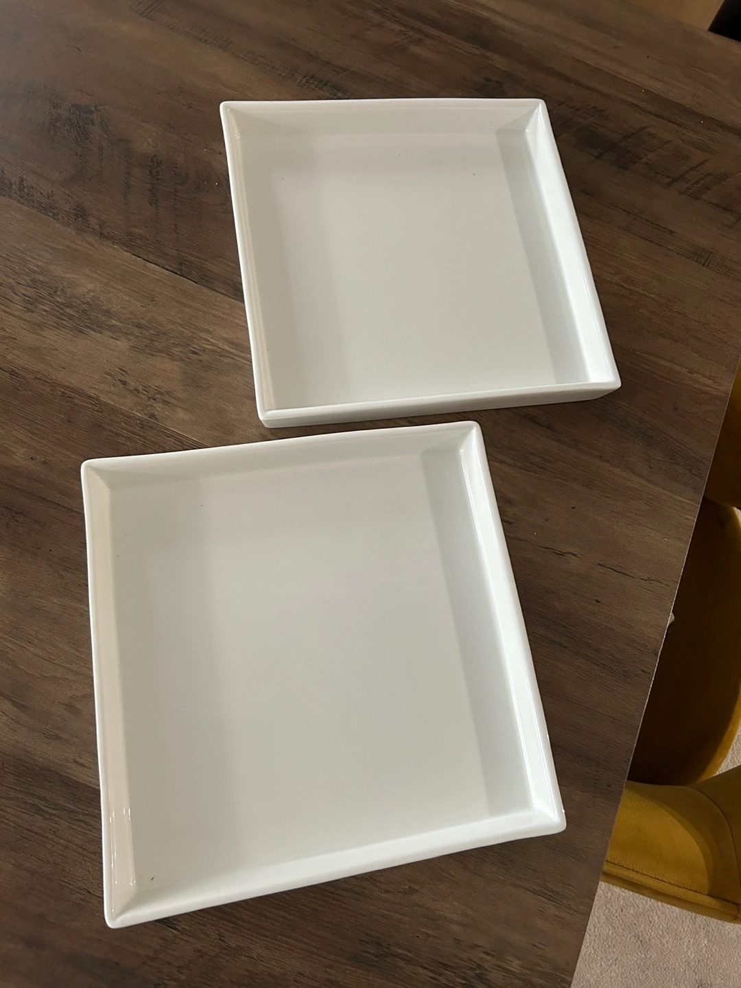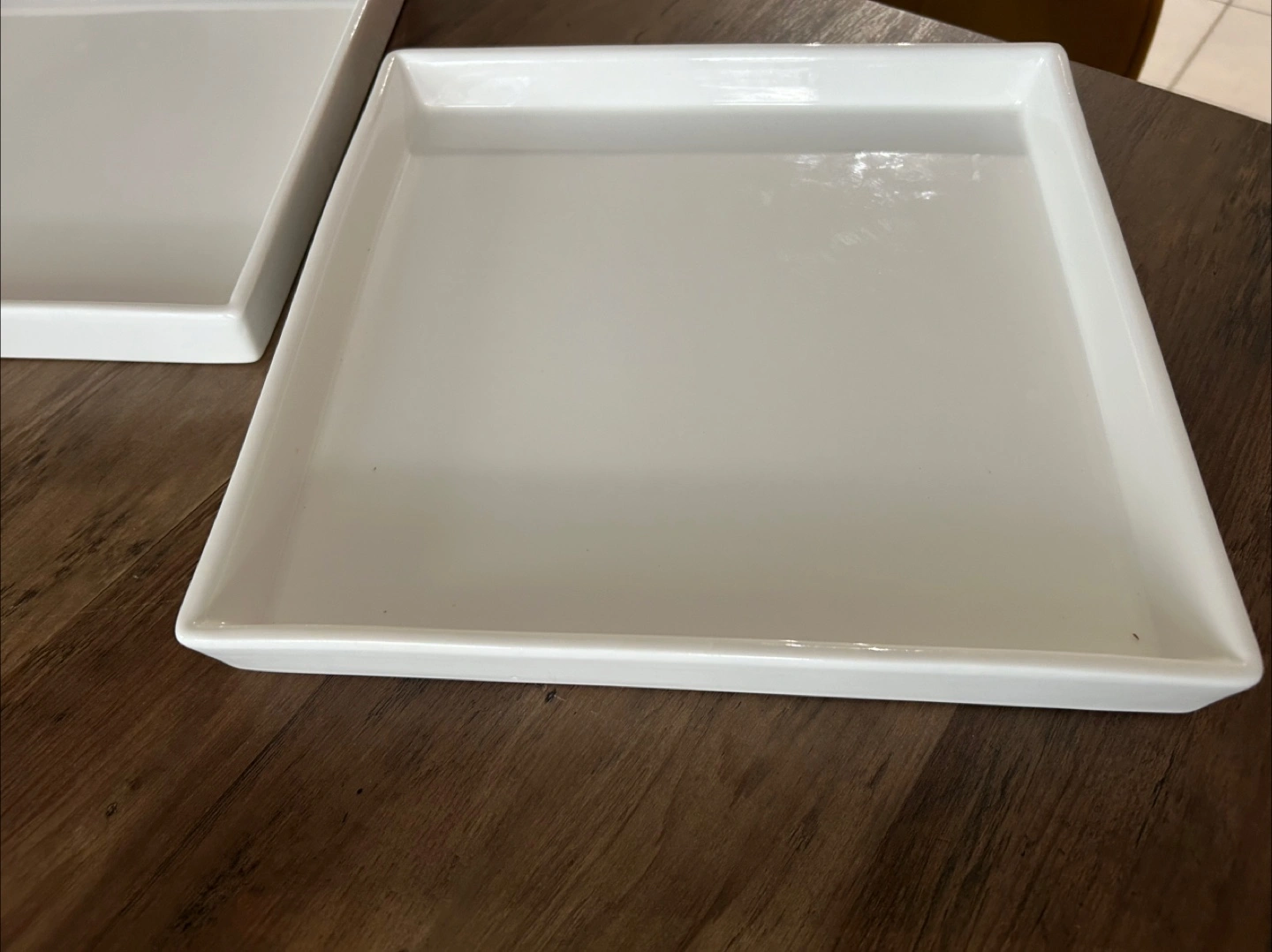 20White square serving dishes, sold as a pair. Simple design. A la Carte Large Square Platter. Ceramic. Never Used