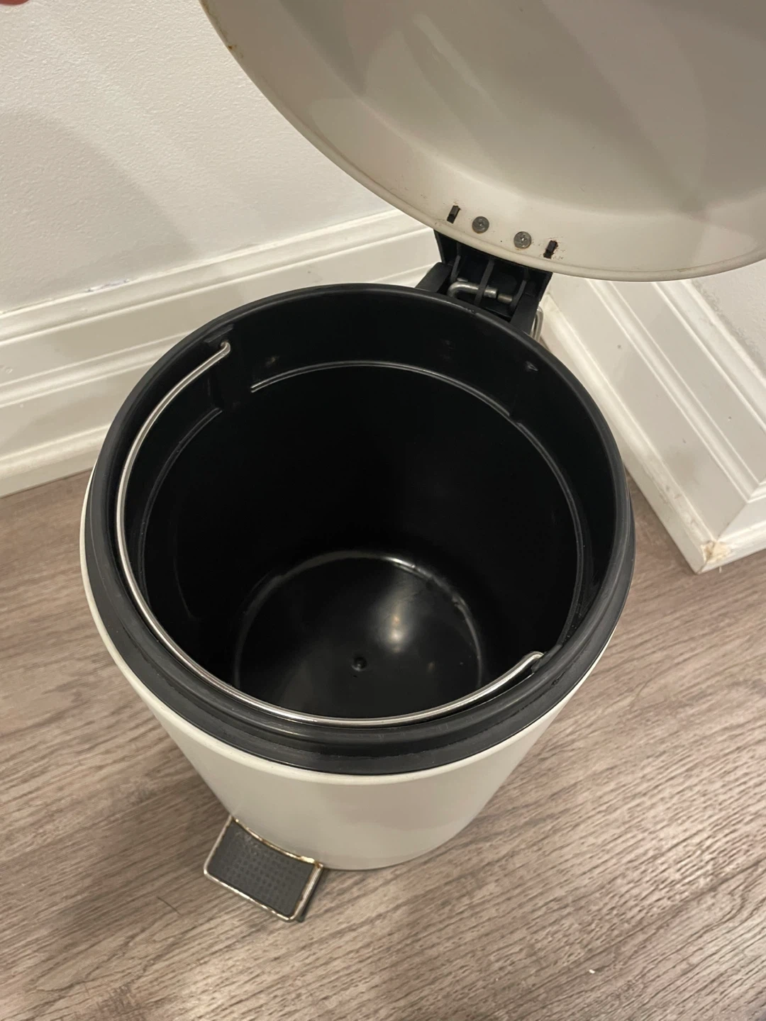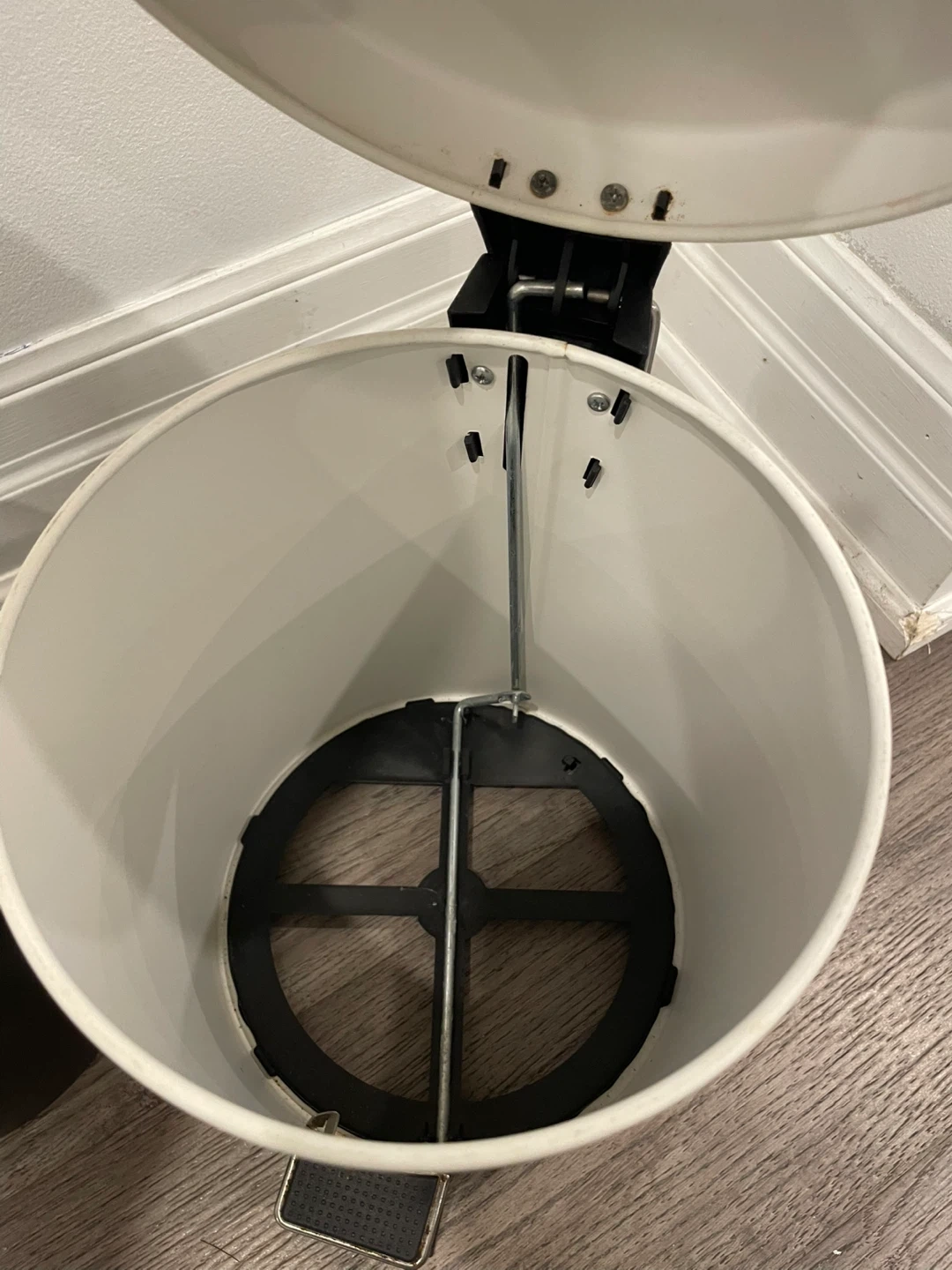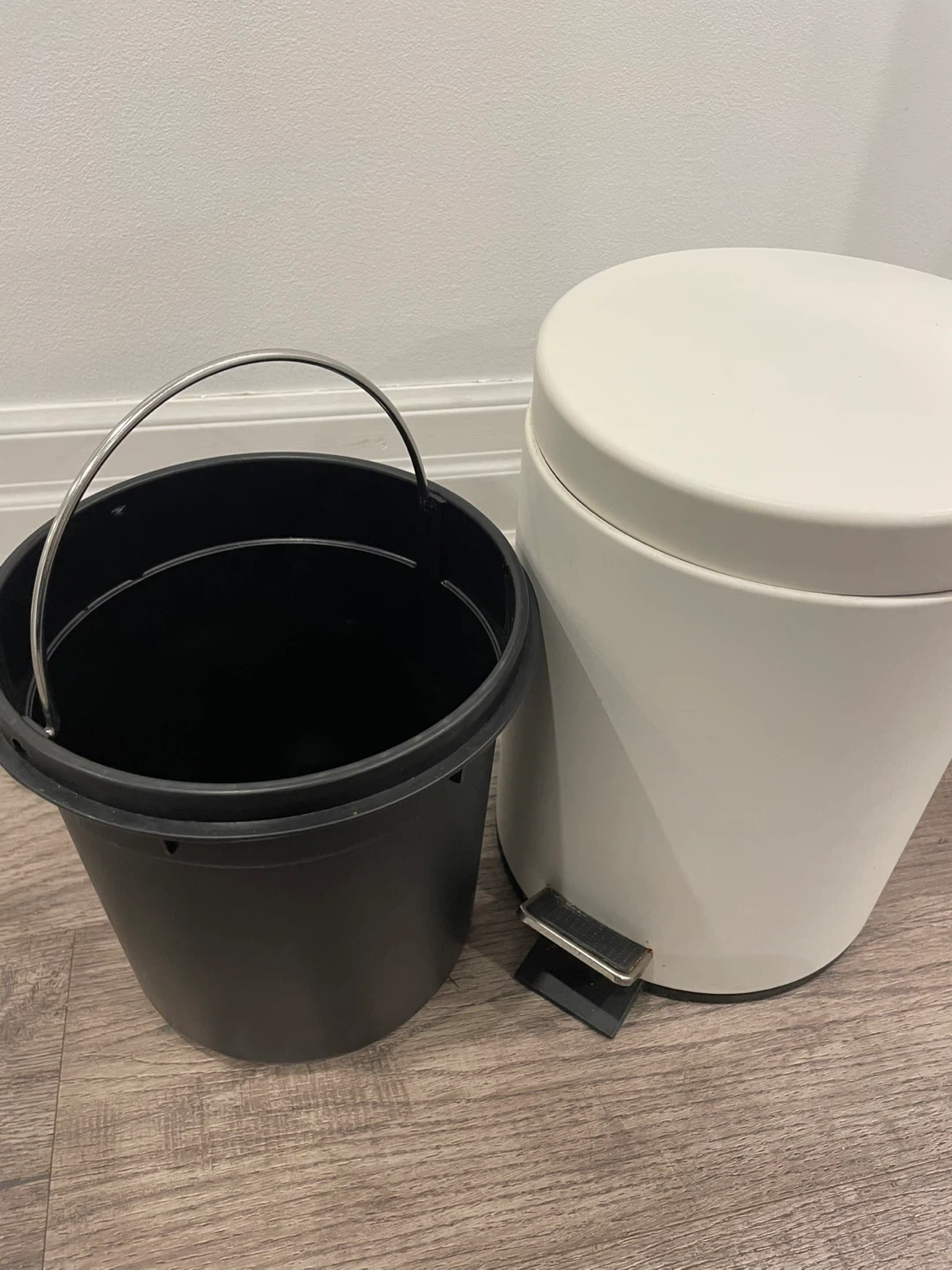 It's in great condition and perfect for any room. It also comes with a black bucket insert to easily remove and replace the trash bag