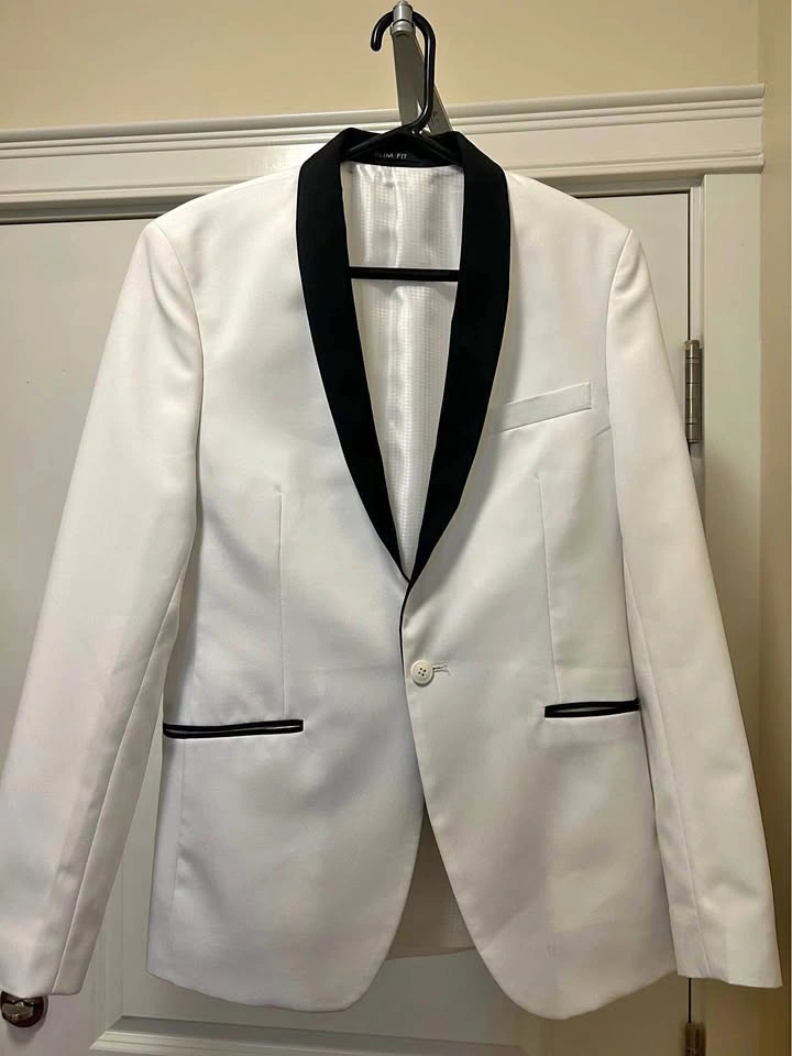 5Selling a white suit jacket in great condition. Worn once for a graduation, no stains or damage. Perfect for formal events, weddings, graduations, or a night out.