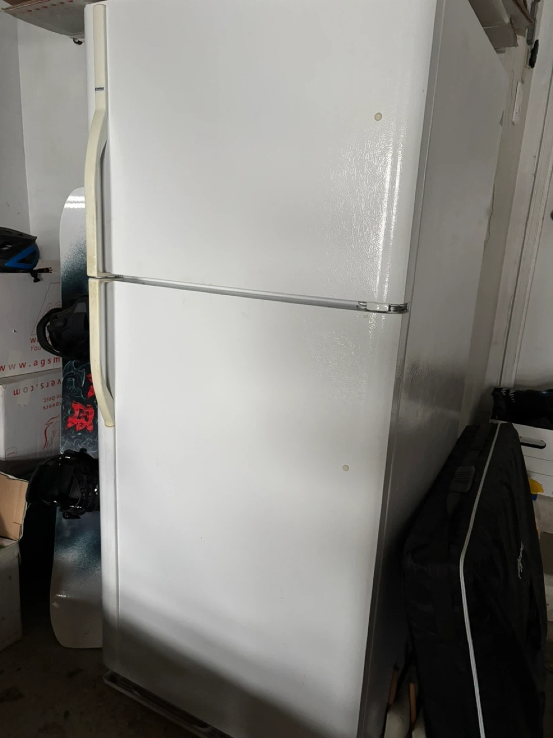 10Selling a clean, white top freezer full size refrigerator fully functional. It features adjustable shelves and humidity-controlled crispers to keep your food fresh. Perfect for a rental unit or as a second fridge! Dimensions are 31 (W) x 34 ( D) x 69 (H) in inches