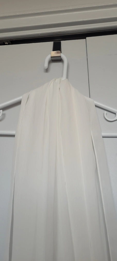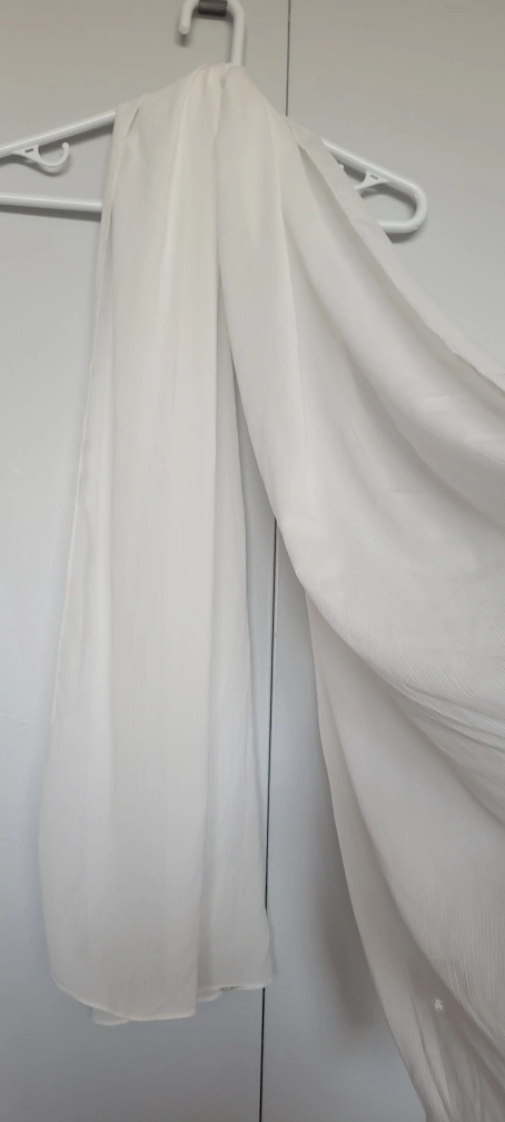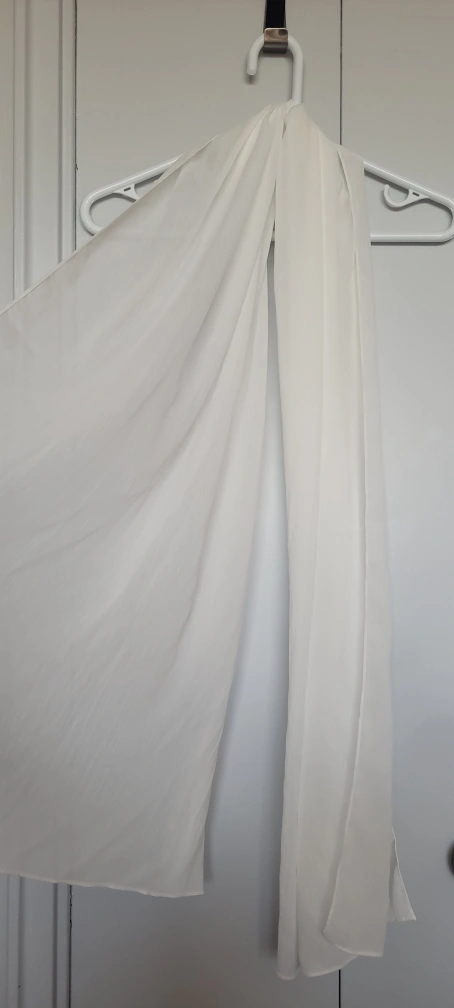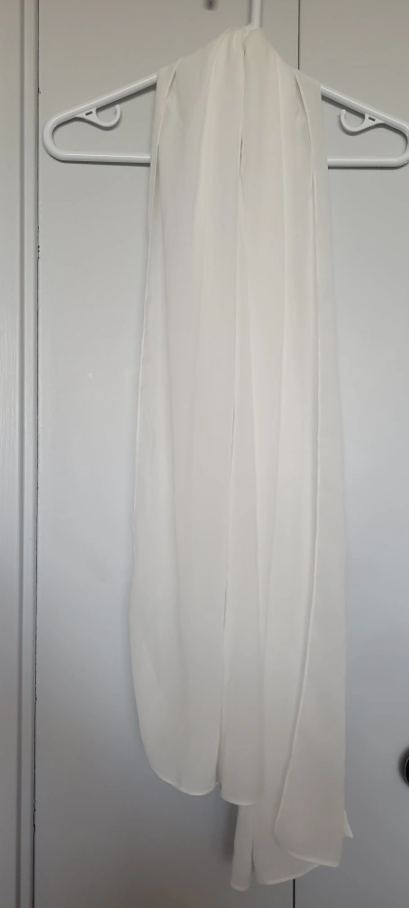 Selling a white scarf. It feels nice and is translucent. It's at least 5ft tall and is reminiscent of a wedding veil, but it has a little more weight to it. Never worn. Reason for selling: Wanted it as a bandana, wayy too big for that. Coming from a clean smoke-free, pest-free, pet-free home. Available to meet around Bathurst & Sheppard, Vaughan Mills or around Finch & Yonge. Spend $10, I'll make it $5. Cash Only!!
