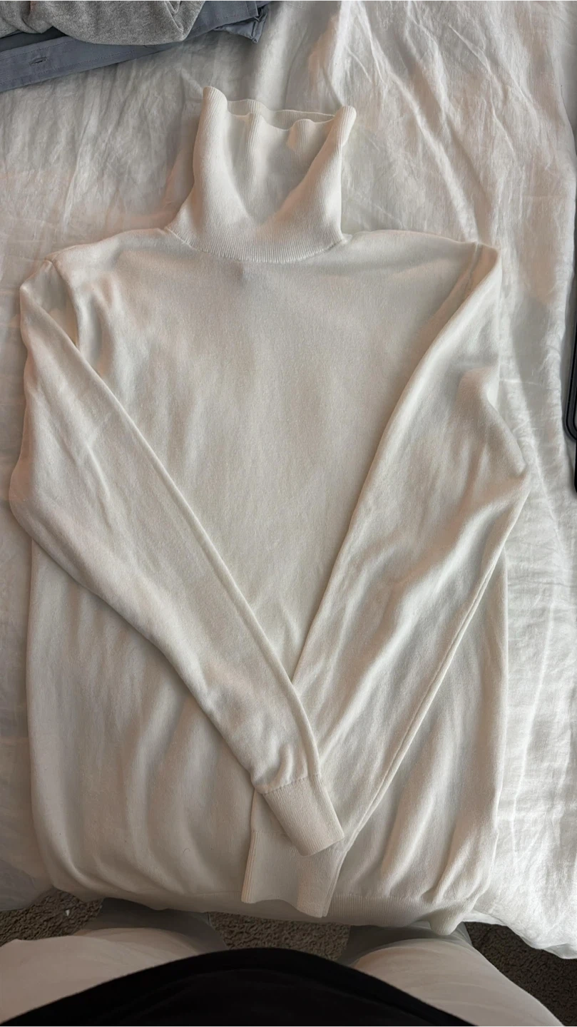 10A cozy white turtleneck sweater, perfect for layering in the cooler weather! It's in great condition and ready for a new home