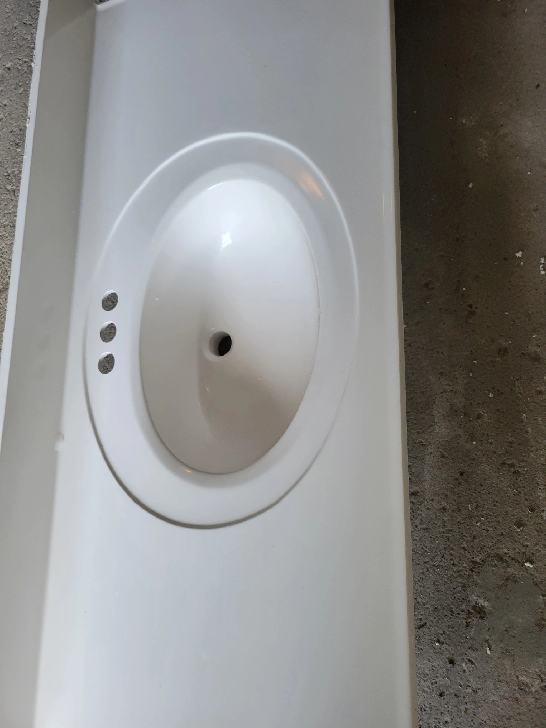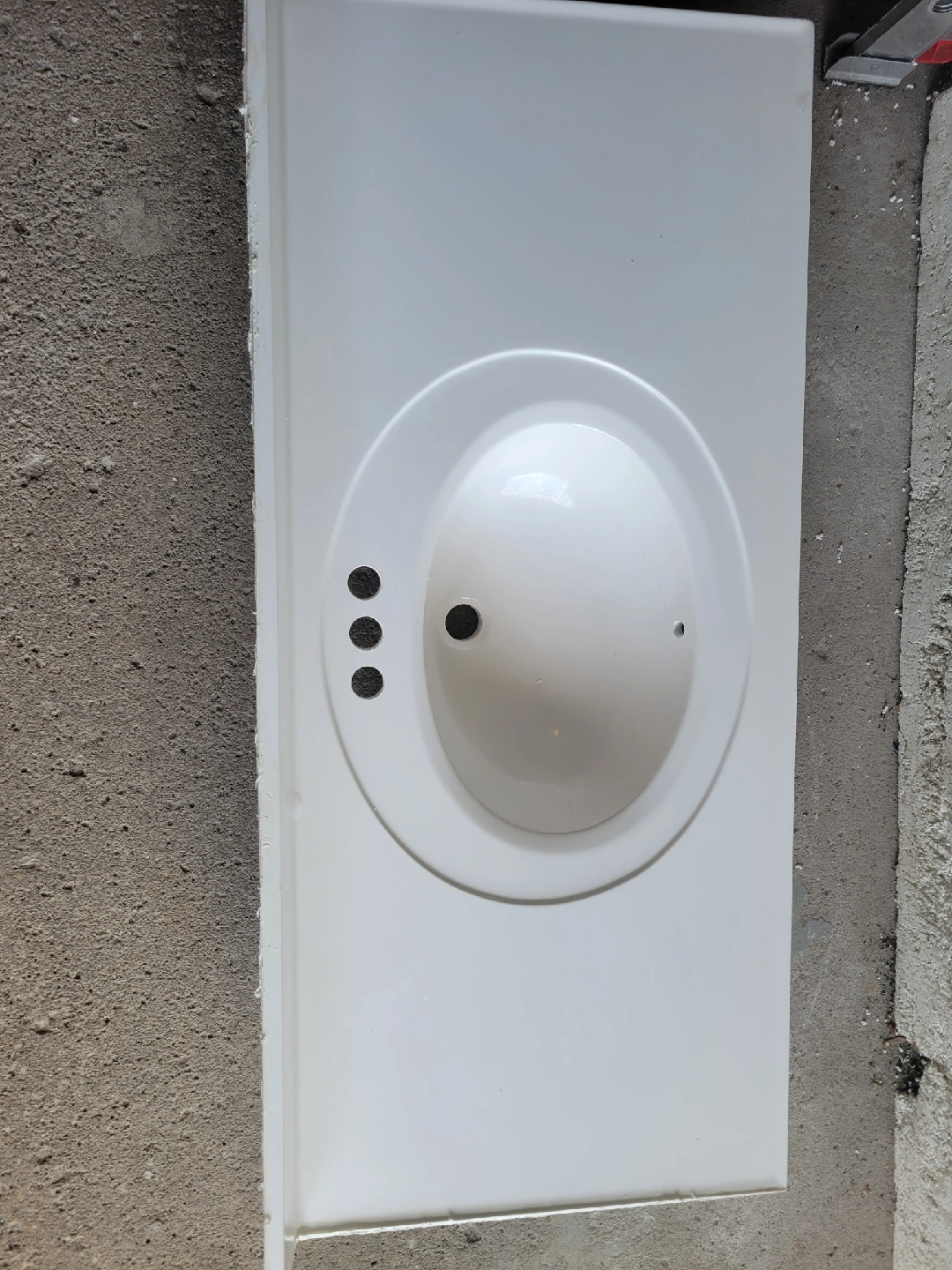 Selling a white ceramic vanity sink top. It's in great condition and ready to be installed in your bathroom. Perfect for a quick and easy upgrade! Dimension: 49in x 22in Open to negotiation.