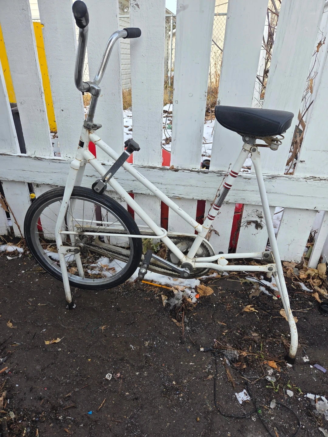 60Selling a white vintage Stationary bicycle. It has a unique frame design and classic look.