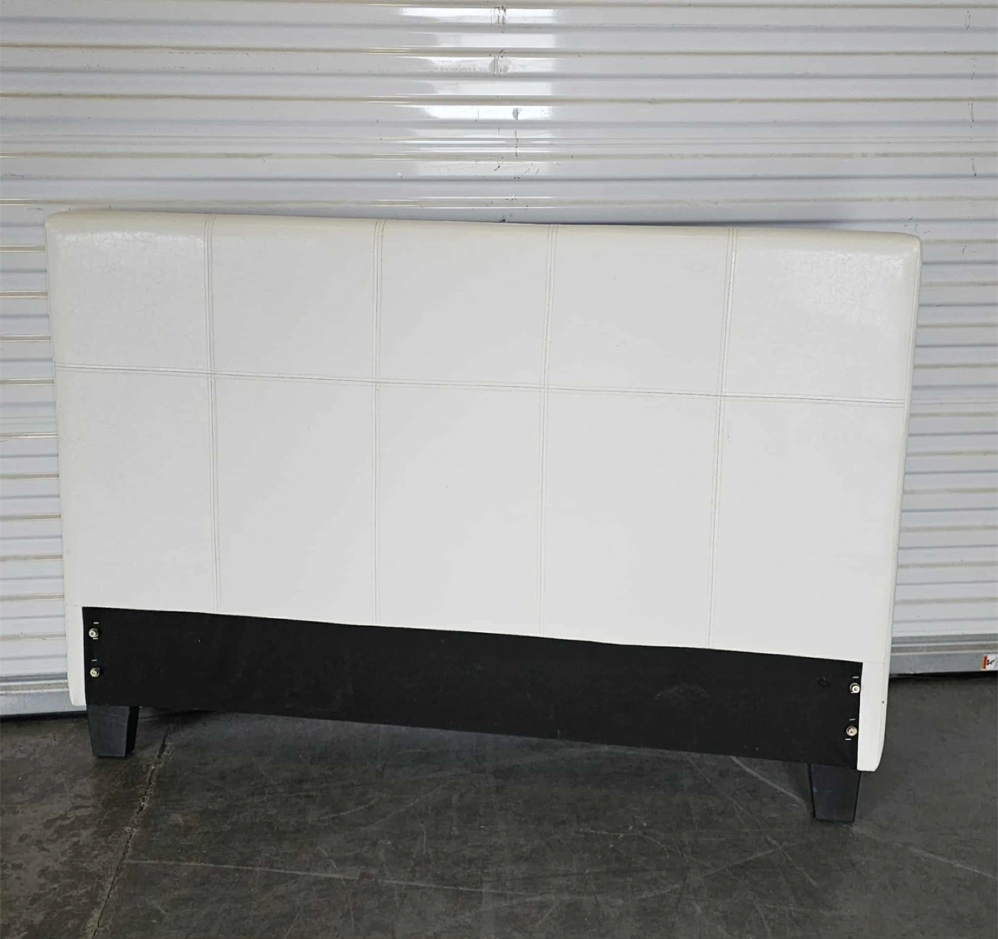 51White vinyl double size head board - hooks up to any standard bed frame