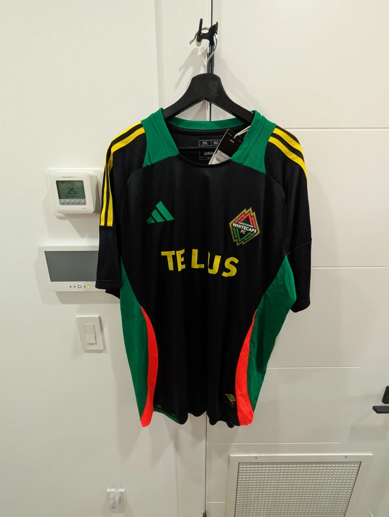 Selling an Adidas Vancouver Whitecaps Black History Month jersey in size XL. It's black, green, and yellow. The jersey is in great condition and ready for a new fan!