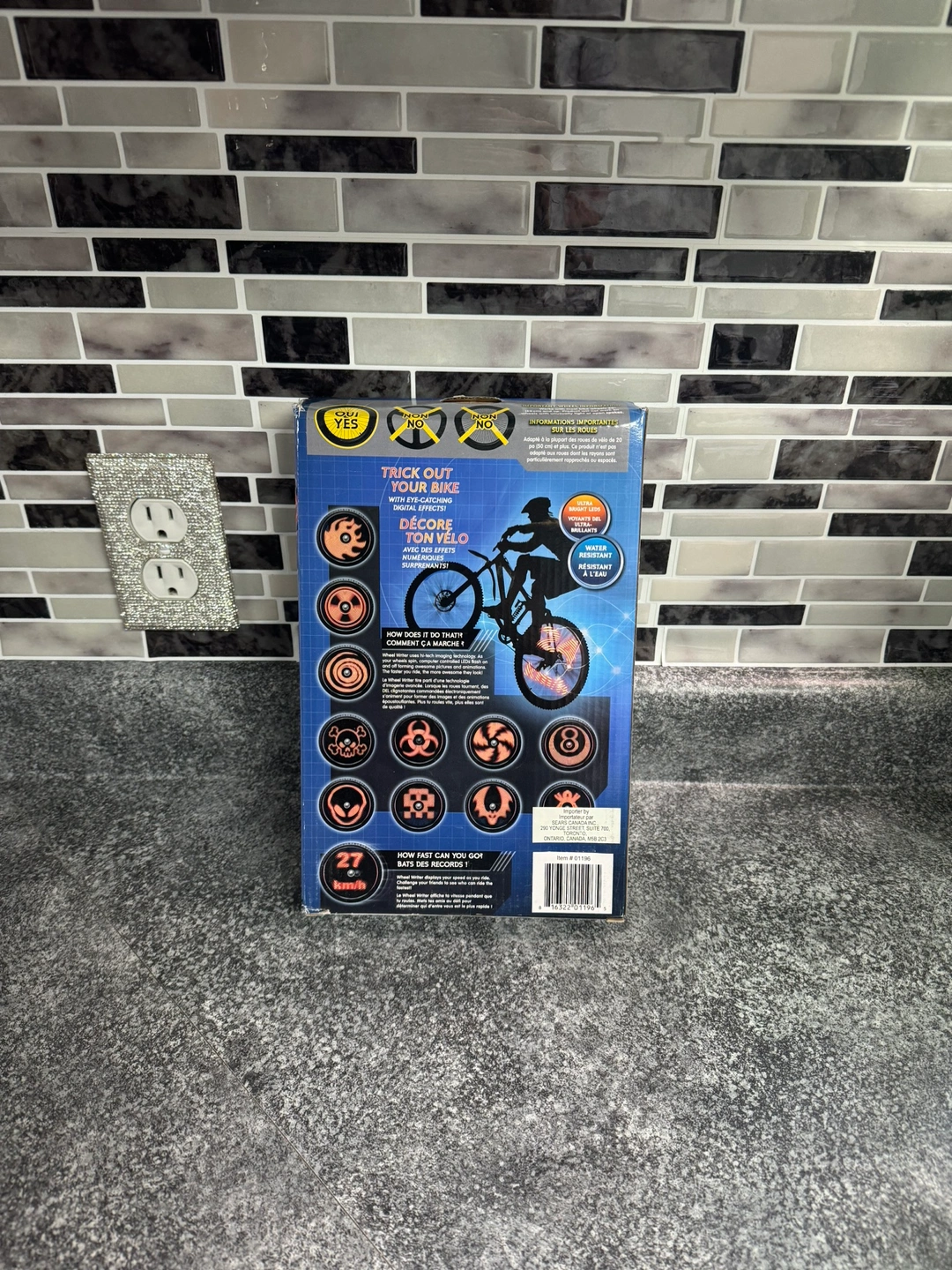 The spokes are designed to spin and create a writing effect as the bicycle wheel turns.